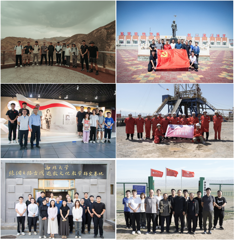本次“访企拓岗”期间,张志飞还带领师生实践队伍开展了系列实践教学活动。在丹霞地貌与典型剖面地带,队员们深入岩层,进行地质调查与认知实习;在三塘湖盆地,实践队伍重温了我校1953级杰出校友杨拯陆烈士的感人事迹,在其铜像前庄重拜谒,并以现场教学、集体纪念等形式,深刻引导青年学生厚植爱国主义情怀、强化使命担当。随后,实践队还对吐哈油田采油作业现场进行了实地考察,深入了解我国西部油气田的发展历程、勘探技术及数字化运维情况,提升了学生对能源勘探全过程的感性认知与系统理解。此外,在巴里坤县和伊吾县,实践队还与我校东天山考古队开展了2场实地交流,促进了地质与考古学科之间的交叉融合,拓宽了学生的学术视野。