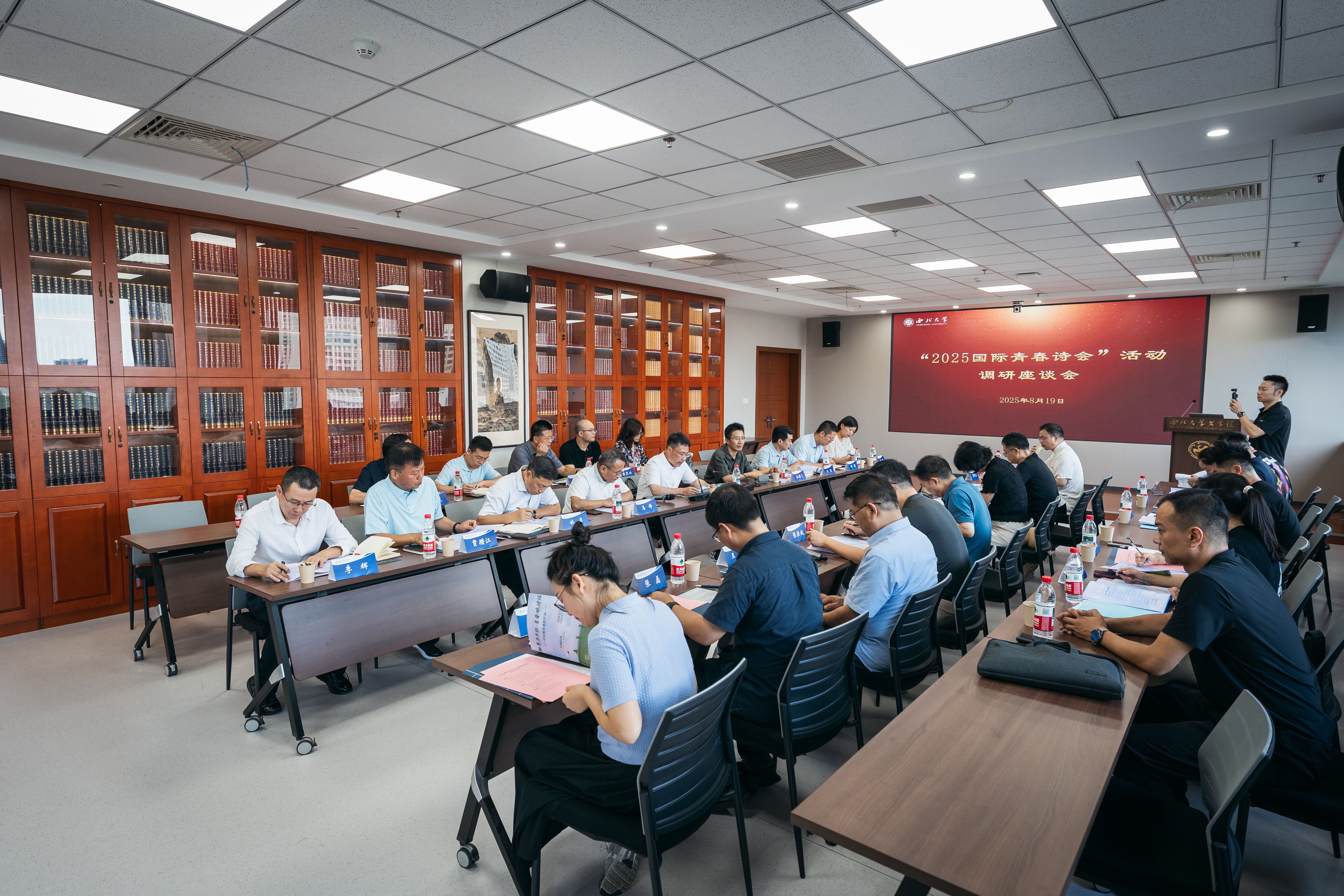 文学院负责人谷鹏飞汇报了“2025国际青春诗会”西北大学活动方案以及前期准备工作。