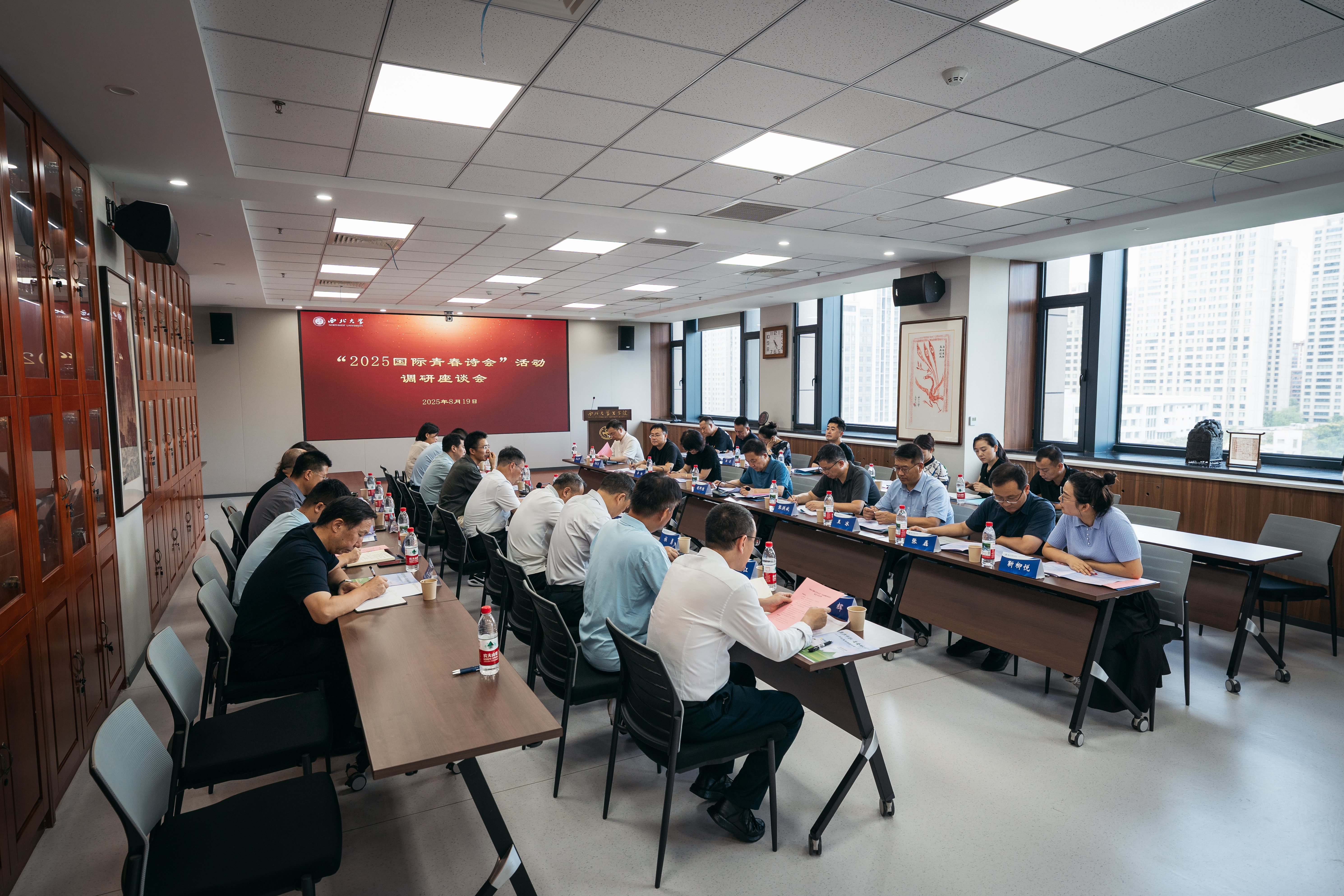 8月19日,中国作家协会党组成员、书记处书记胡邦胜,陕西省作家协会党组书记、常务副主席单红一行来校就“2025国际青春诗会”(中国-拉美国家专场)筹备工作开展调研。我校校长孙庆伟陪同调研并出席座谈会,陕西省作家协会、陕西卫视及我校相关单位负责人陪同调研并参会。