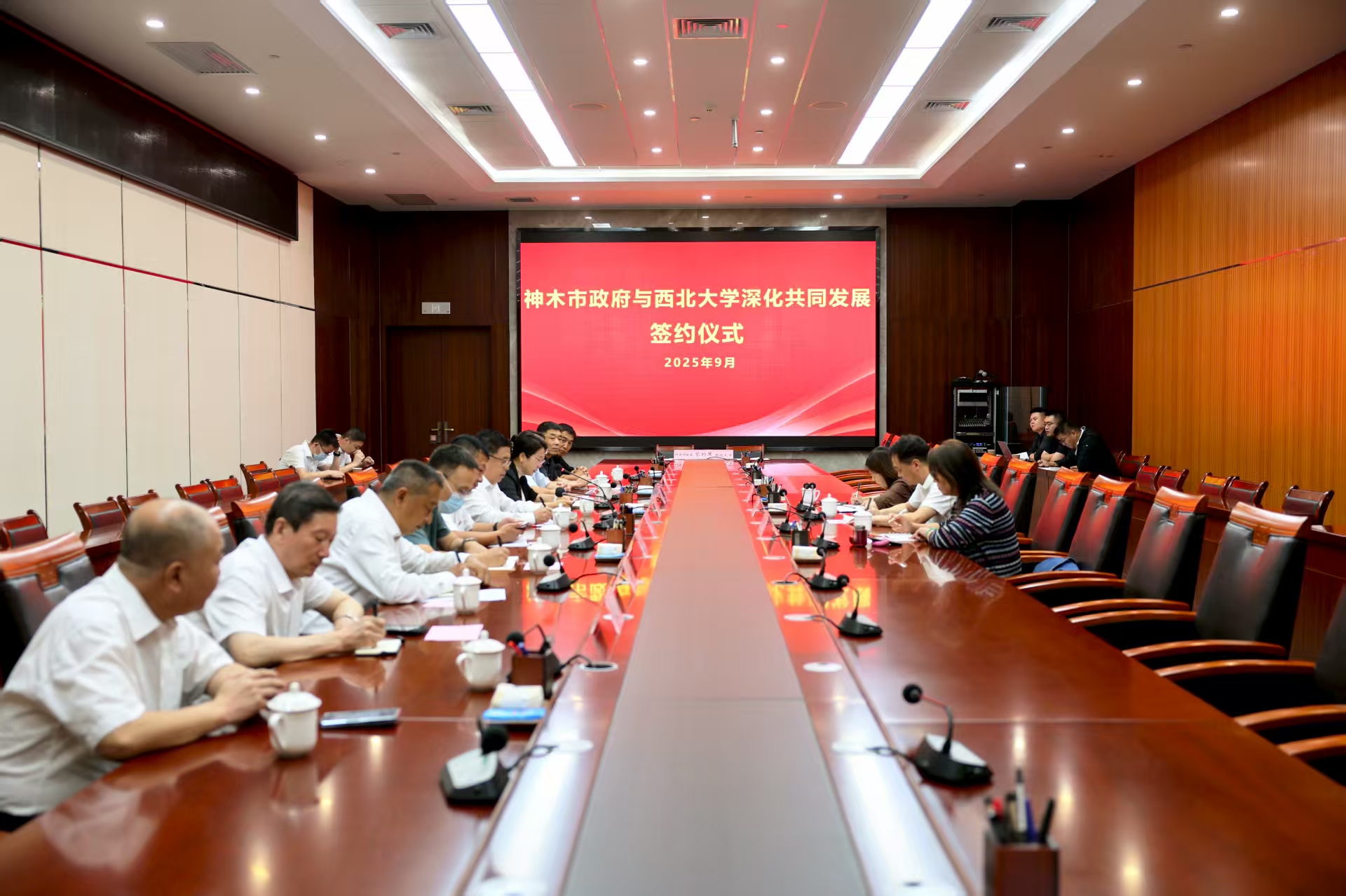 陈富林和席拓代表双方签署《神木市人民政府 西北大学关于进一步深化医学事业共同发展的框架性合作协议》。根据协议内容,双方将共建医学科研教学平台,联合申报科研项目,加强专业医学人才培养和学术交流。同时,进一步加强西北大学附属神木医院科教研协同发展,共同围绕医学教育、人才培养、科学研究、临床技术等多个方面开展合作,带动神木市整体医疗服务水平提升。