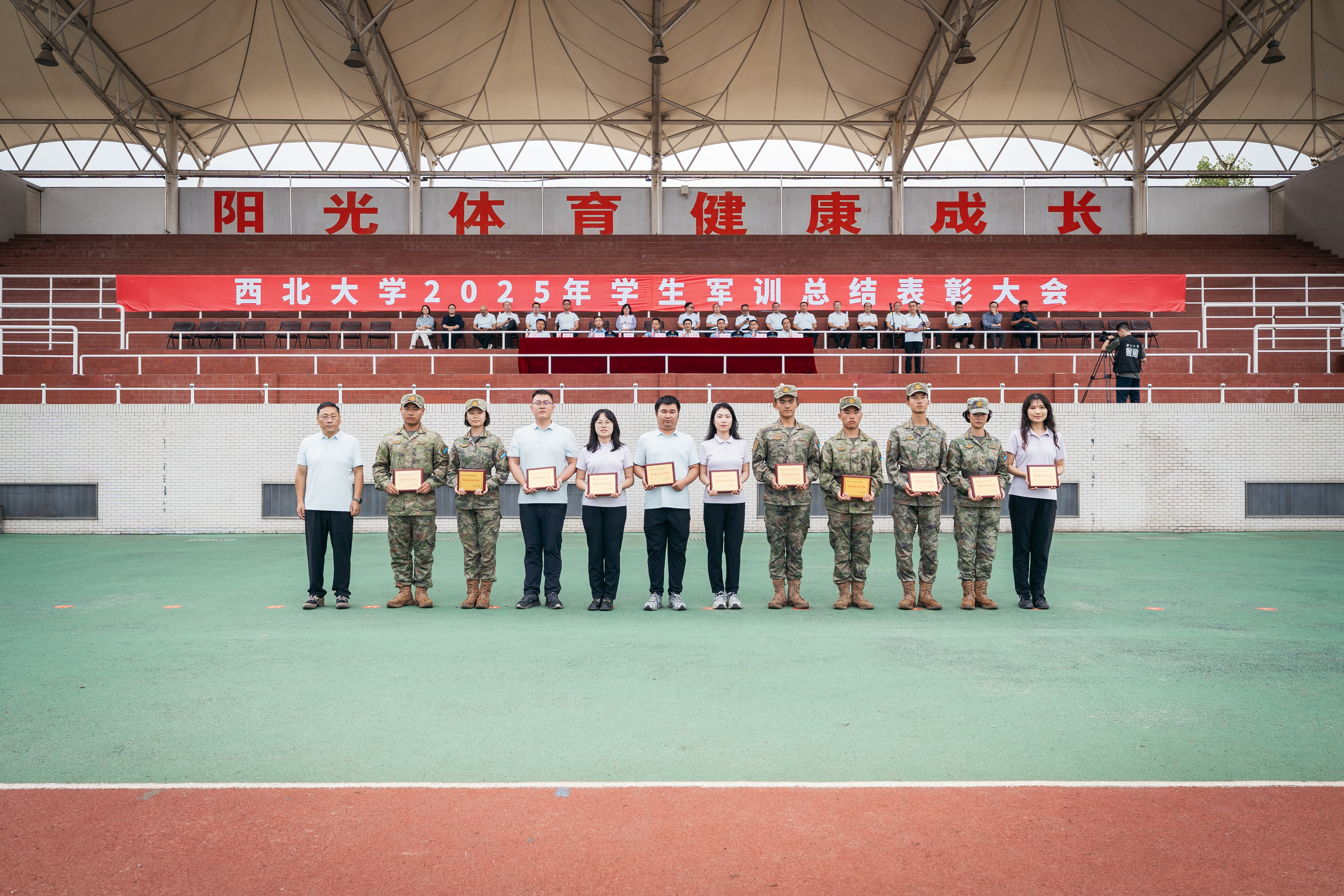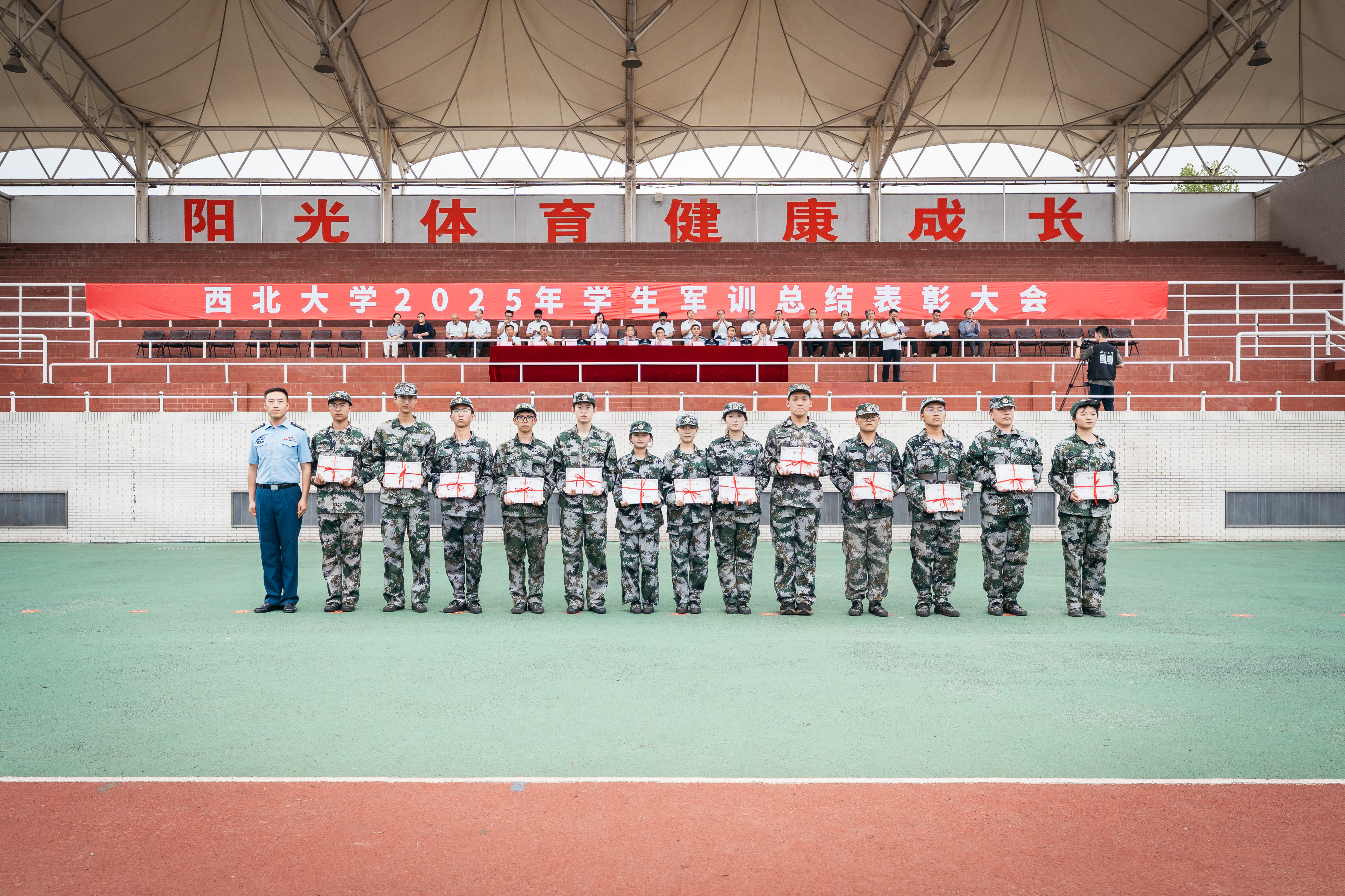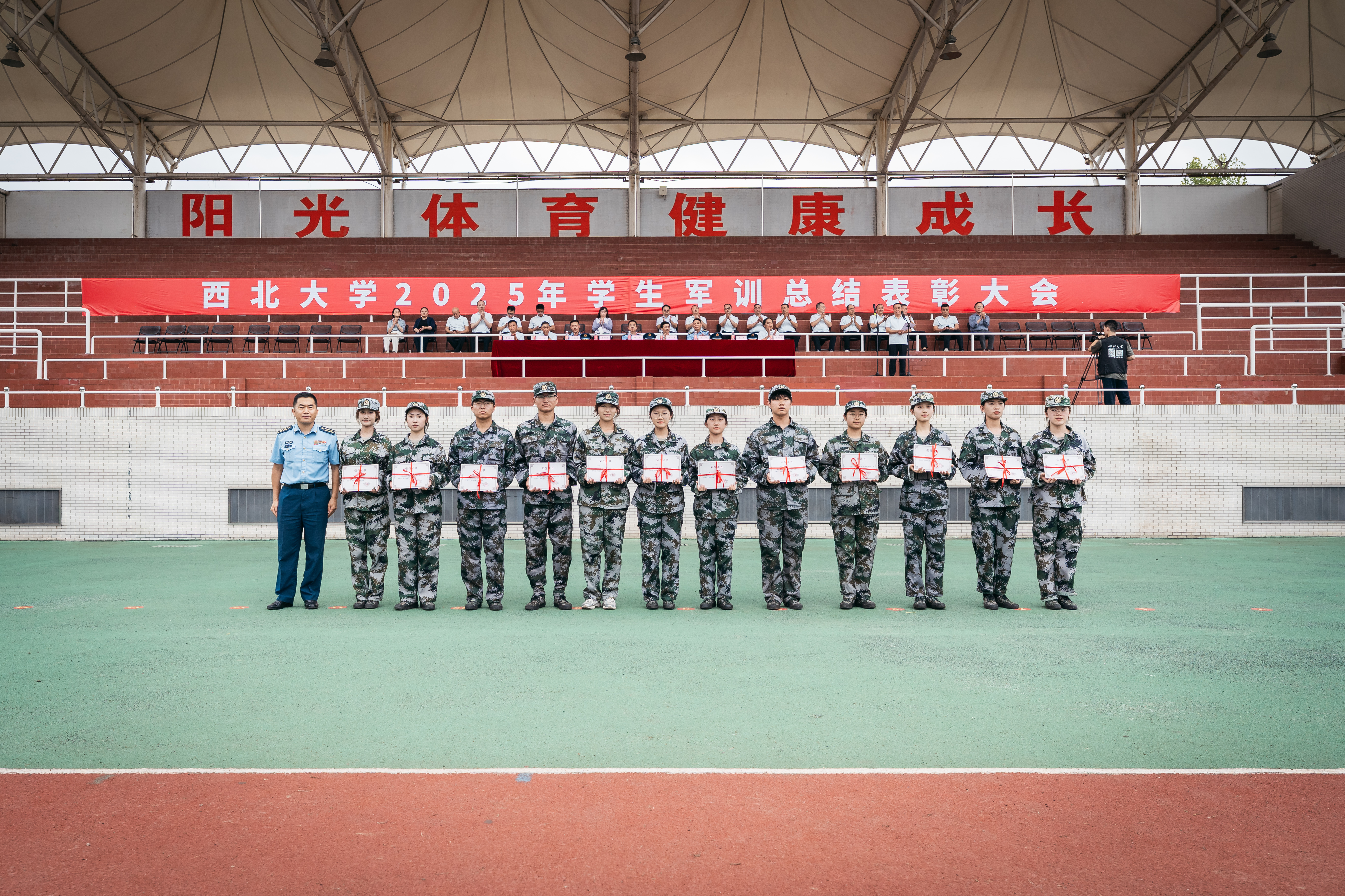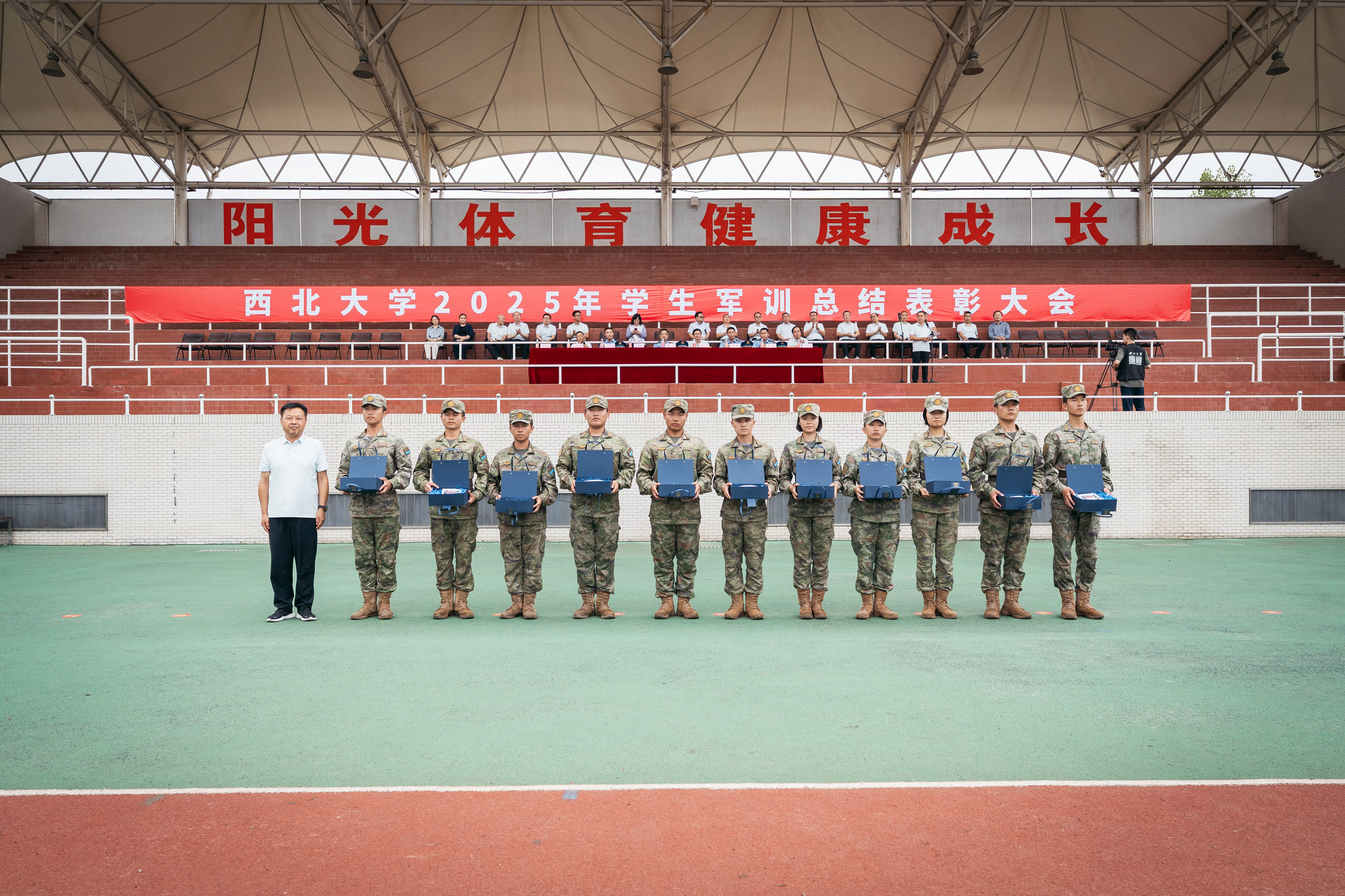 在军训成果汇报中,全体学员以严整的军容、挺拔的军姿、激昂的口号、整齐的队列,展现了新一代西大学子朝气蓬勃、斗志昂扬的精神风貌。每一个动作都精准到位,每一次收尾都利落坚定,不仅体现出严格的训练标准和优秀的军事素养,更传递出他们刻苦学习、顽强拼搏、立志成才、报效祖国的共同信念与追求。