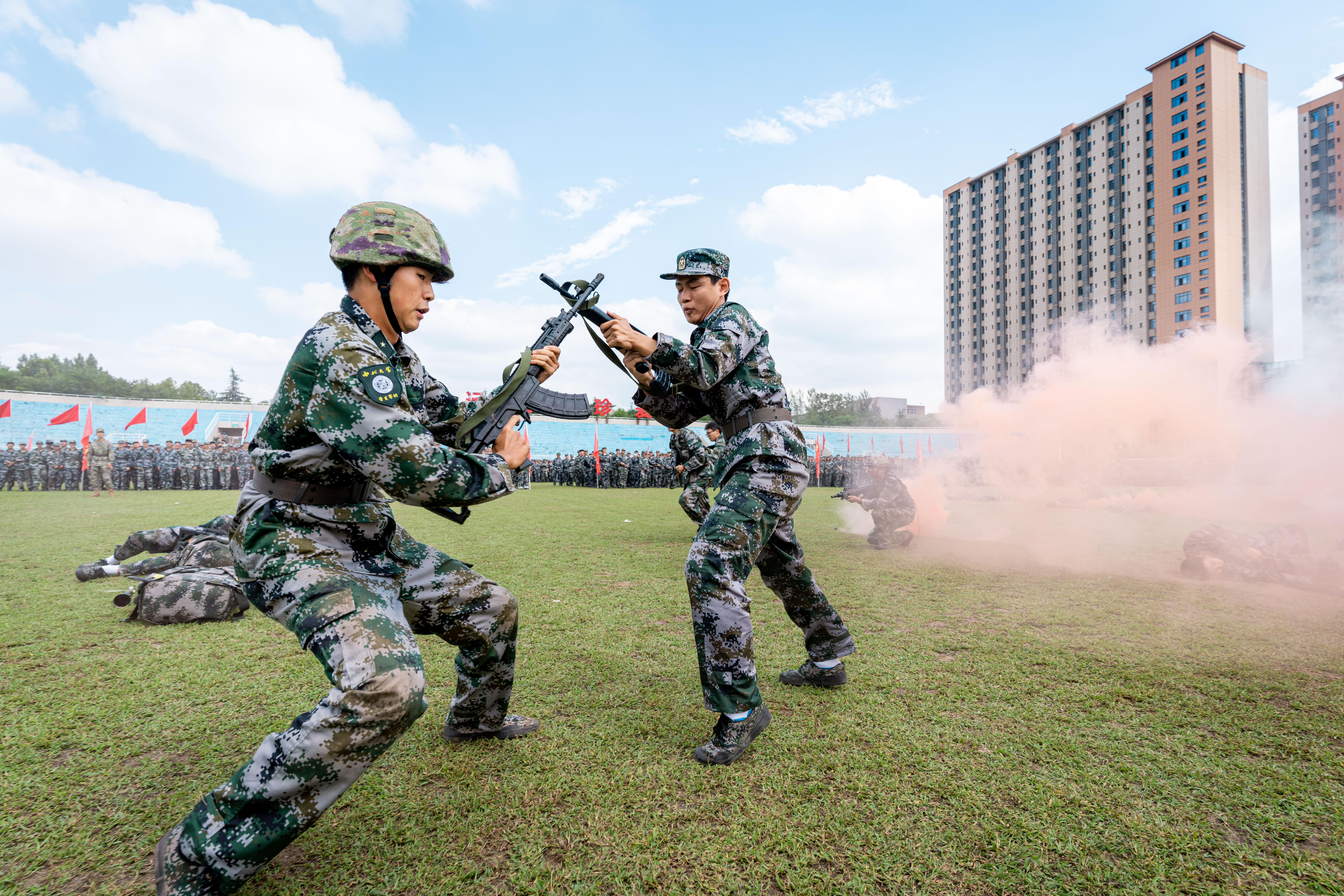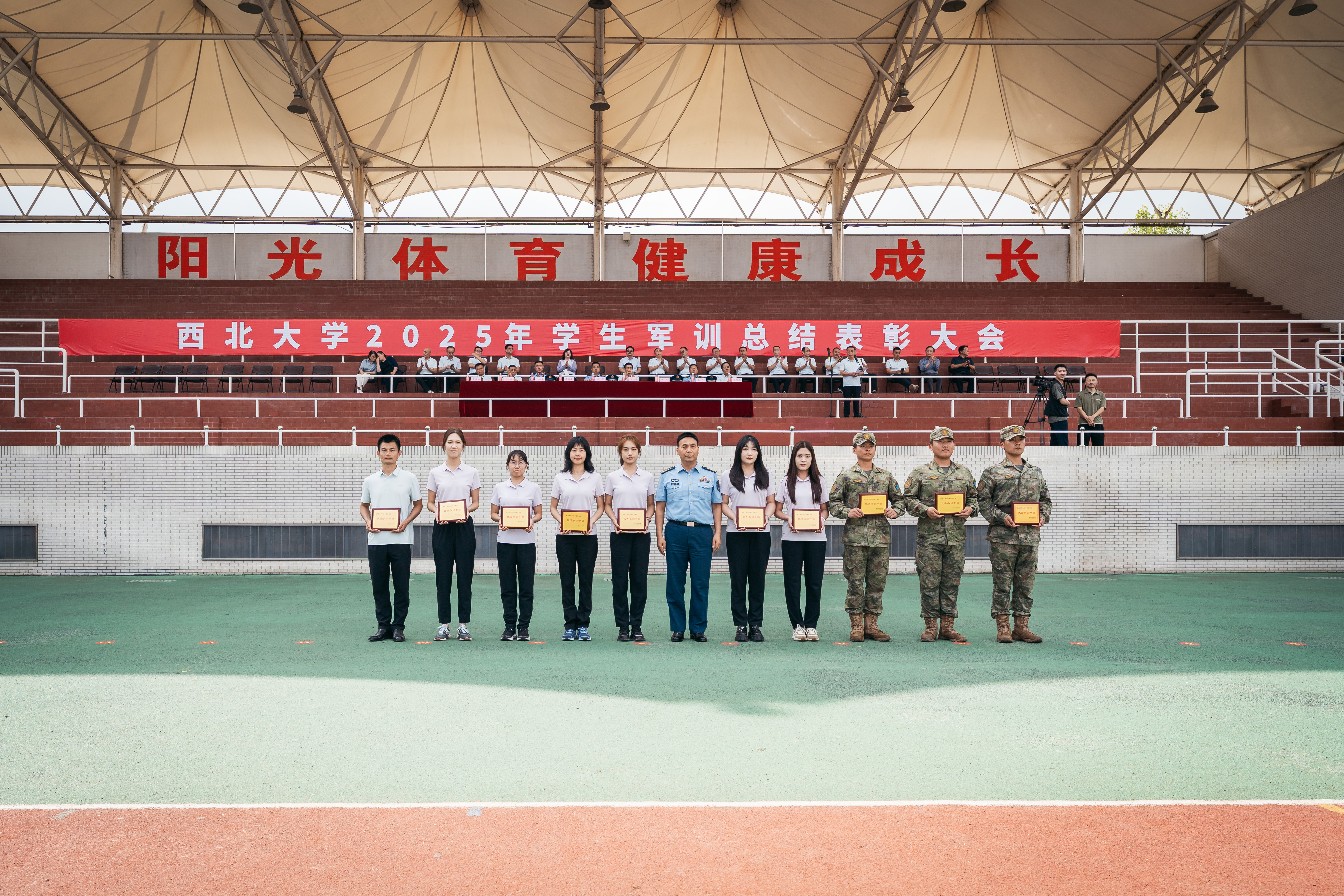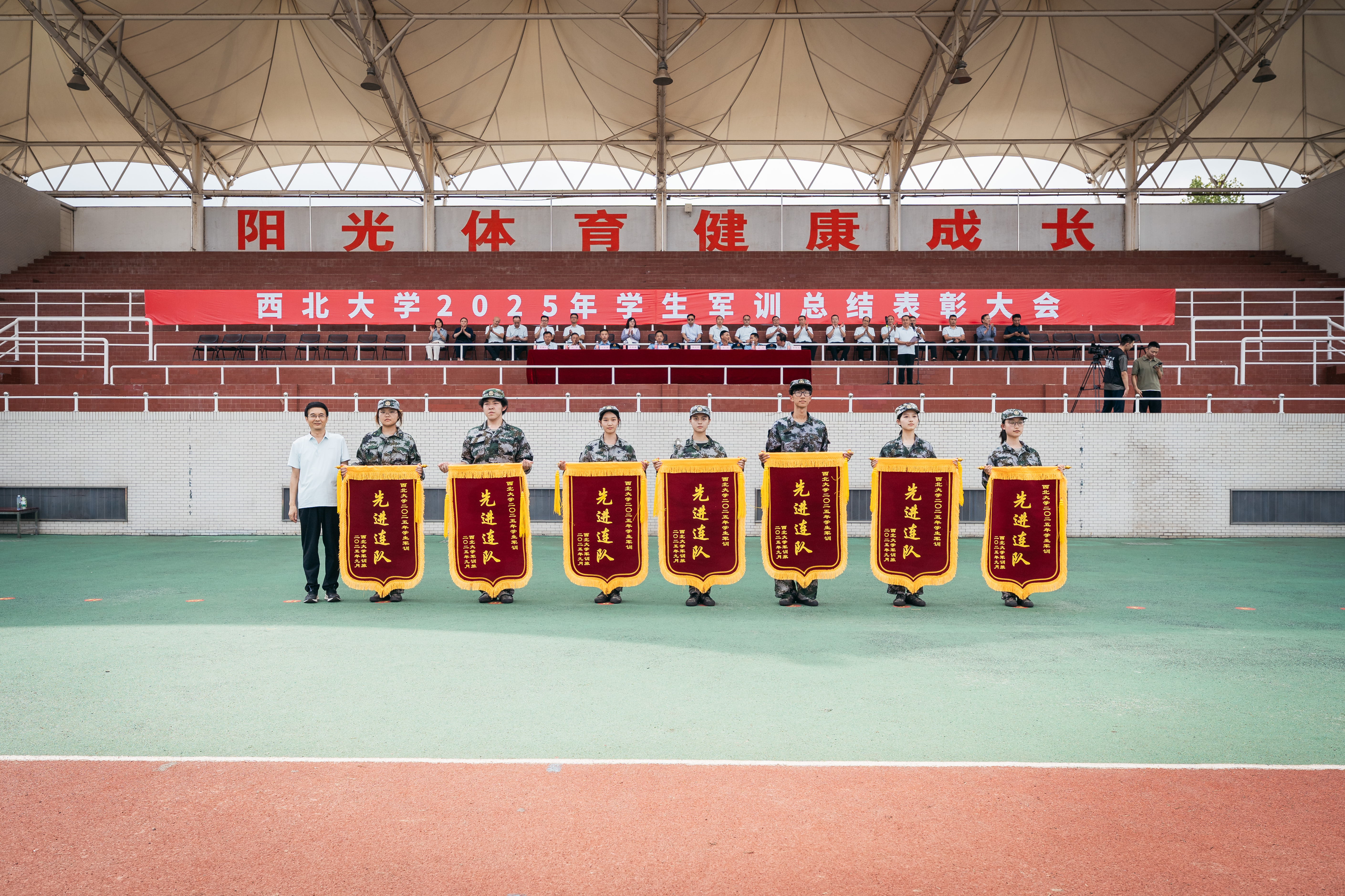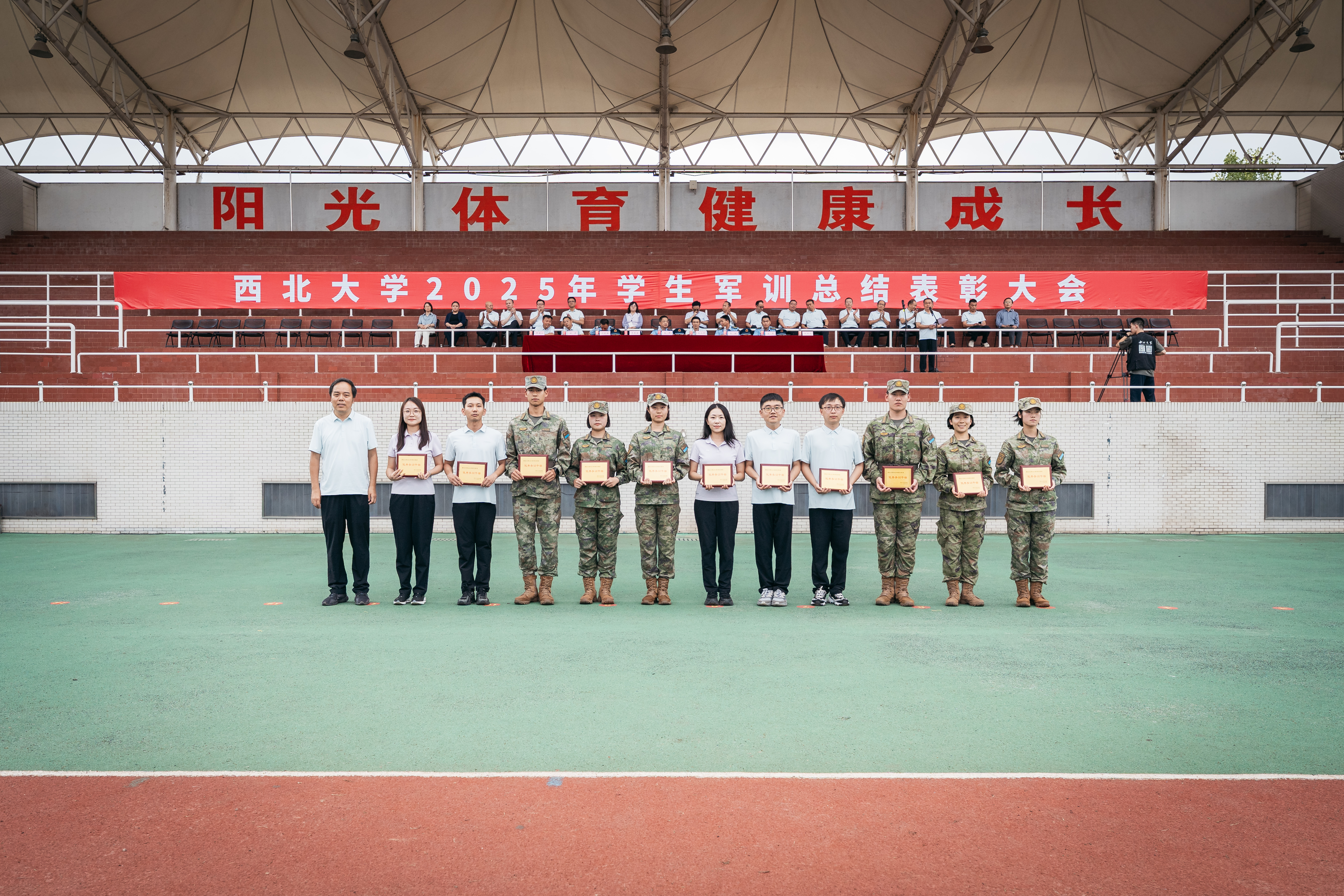在军训成果汇报中,全体学员以严整的军容、挺拔的军姿、激昂的口号、整齐的队列,展现了新一代西大学子朝气蓬勃、斗志昂扬的精神风貌。每一个动作都精准到位,每一次收尾都利落坚定,不仅体现出严格的训练标准和优秀的军事素养,更传递出他们刻苦学习、顽强拼搏、立志成才、报效祖国的共同信念与追求。