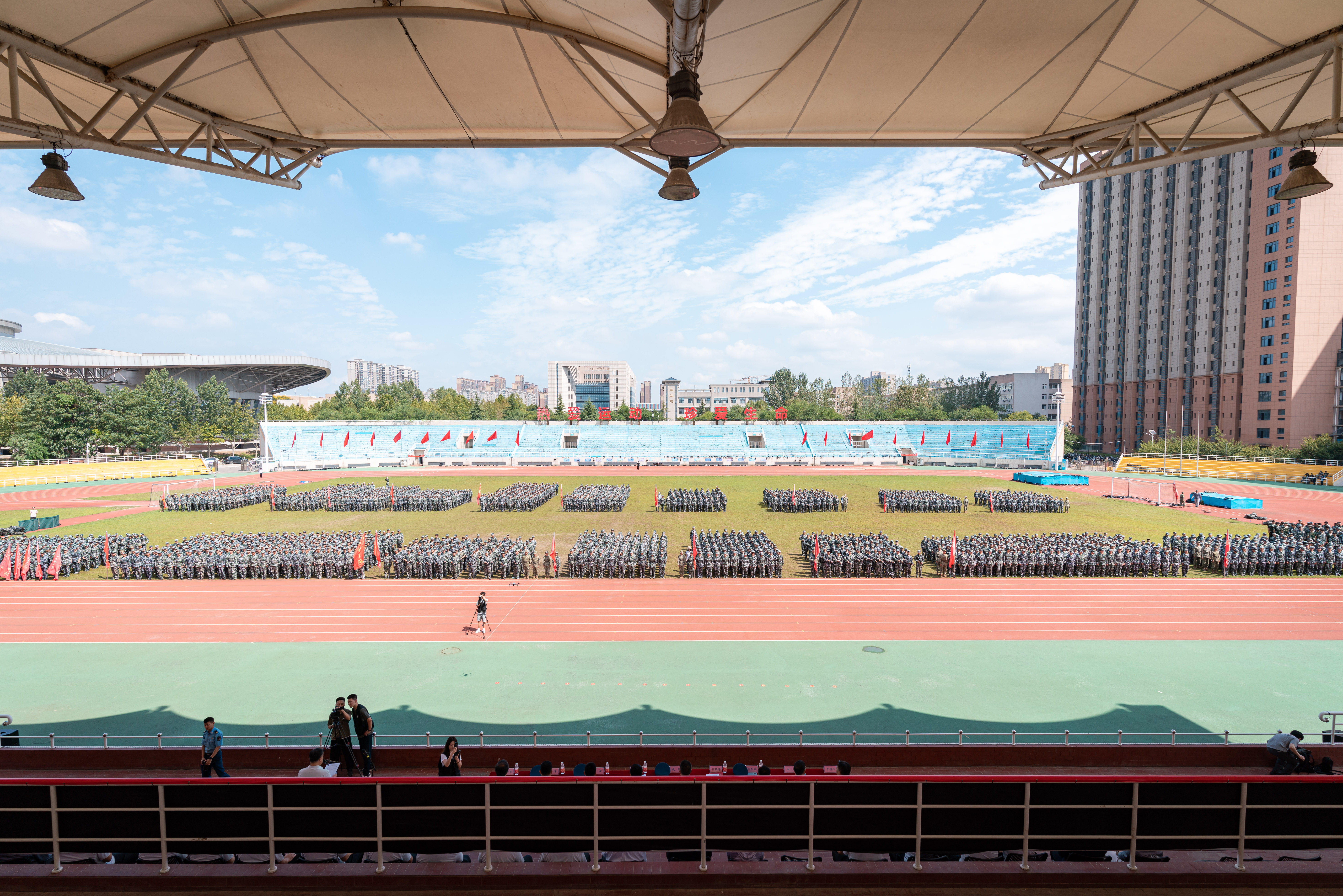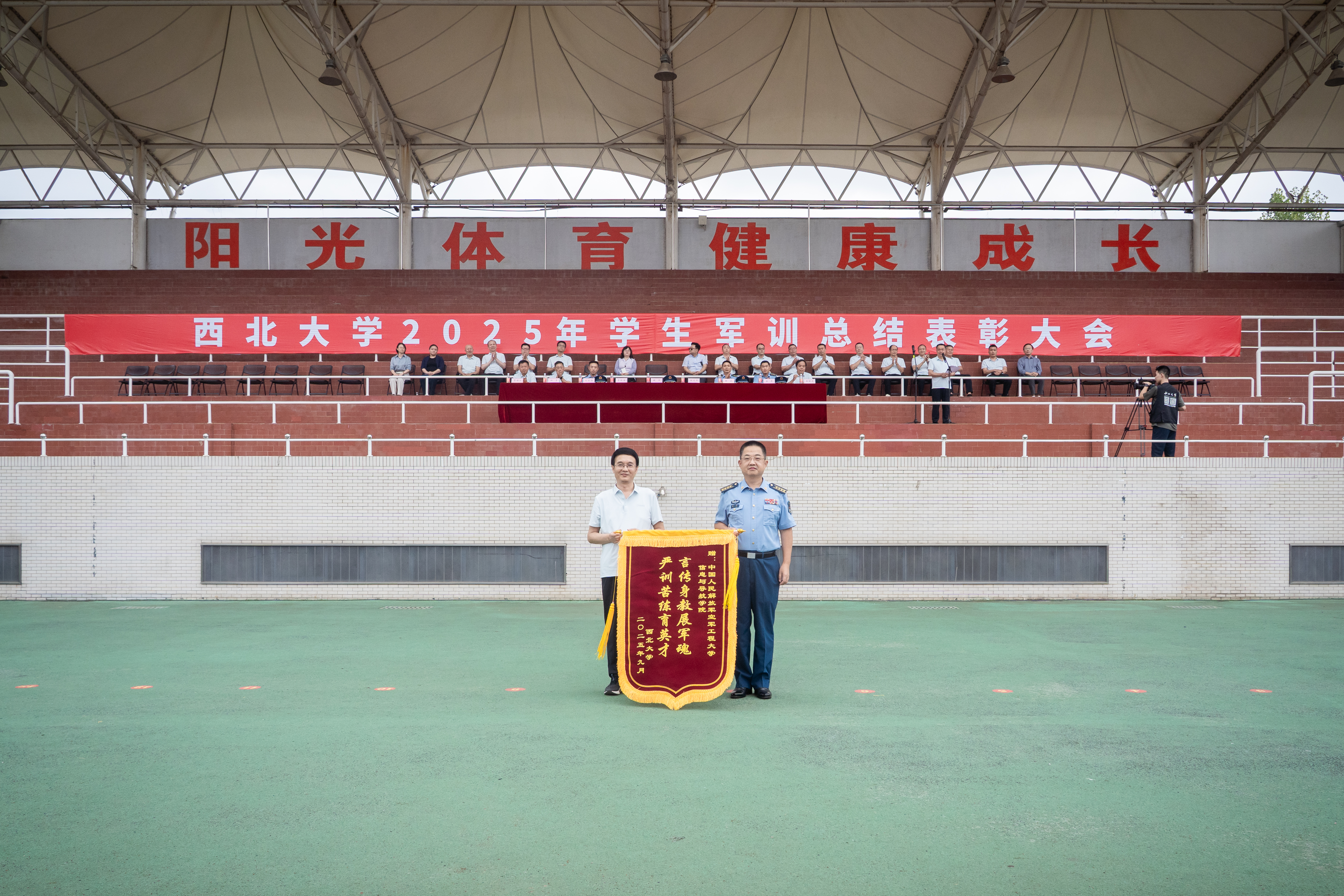 9月12日下午,我校在长安校区举行2025年学生军训总结表彰大会。校党委常委、副校长、军训旅政委张远军,承训单位某部领导和带训干部,我校全体参训干部和2025年参训学生参加了大会,汇报大会由校党委常委、副校长、军训旅副政委李振海主持。