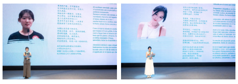 拉美诗人代表巴勃罗·霍夫雷,维多利亚·拉米雷斯·曼西利亚,劳里·加西亚·杜埃尼亚斯,罗伯托·阿库尼亚,阿德里安·门迭塔·莫克特苏马,丽格娜·拉莫斯分别以《自我沉湎》《花粉理论》《痛》《正午》《避难》《面包屑》《蛛网》为题进行原创诗歌朗诵。中国诗人代表王子瓜、吴越、尹东在、周文婷、茱萸、左右分别以《入图》《临湖晚帖》《被母亲劝解过的人世》《从风滚草开始》《立春》《听声》为题进行了朗诵。
