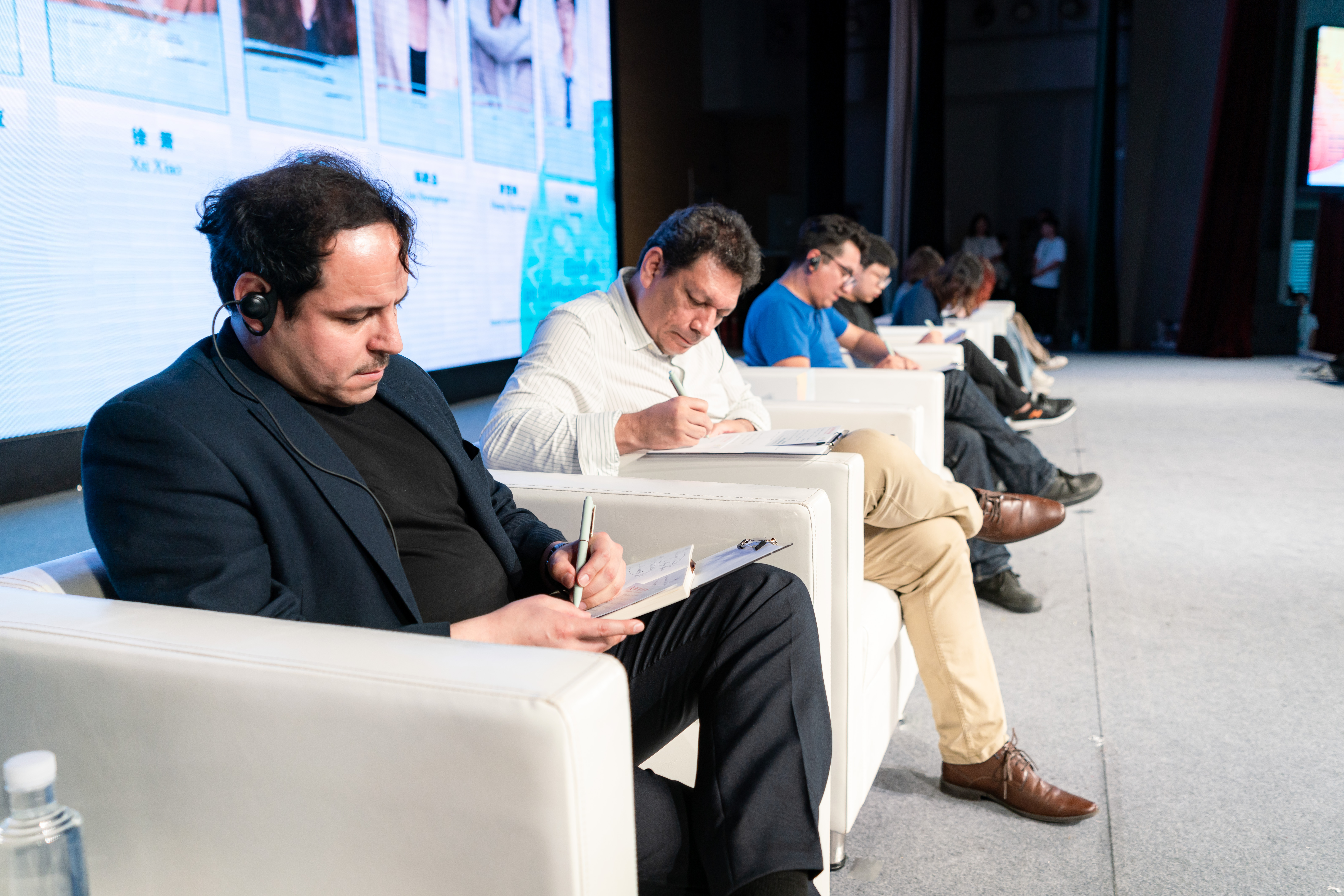 即席酬唱环节,拉美诗人塔米姆·毛林,豪尔赫·加兰,曼努埃尔·贝塞拉,中国诗人徐萧、张慧君、邹胜念、黄雪婵、李岩松以“土地”为题,现场同题作诗分享。