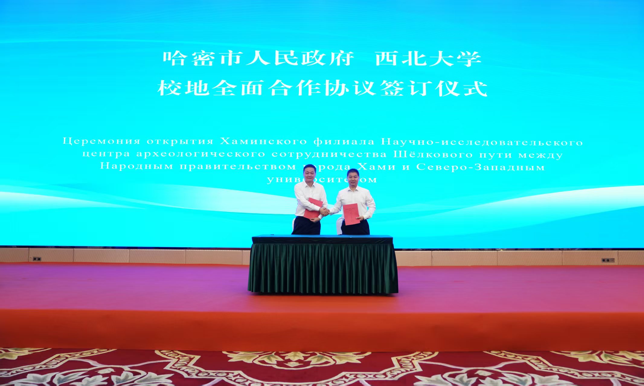 胡冬明和陈富林代表双方签署《哈密市人民政府西北大学校地全面合作协议》。根据协议内容,双方将以建设高水平示范性学术研究机构为目标,合作成立丝绸之路考古合作研究中心哈密分中心。同时,在城市发展规划、产学研用、人才培养、教育培训、学生援疆就业创业、乡村振兴和特色产业发展等方面开展更加深入的合作。