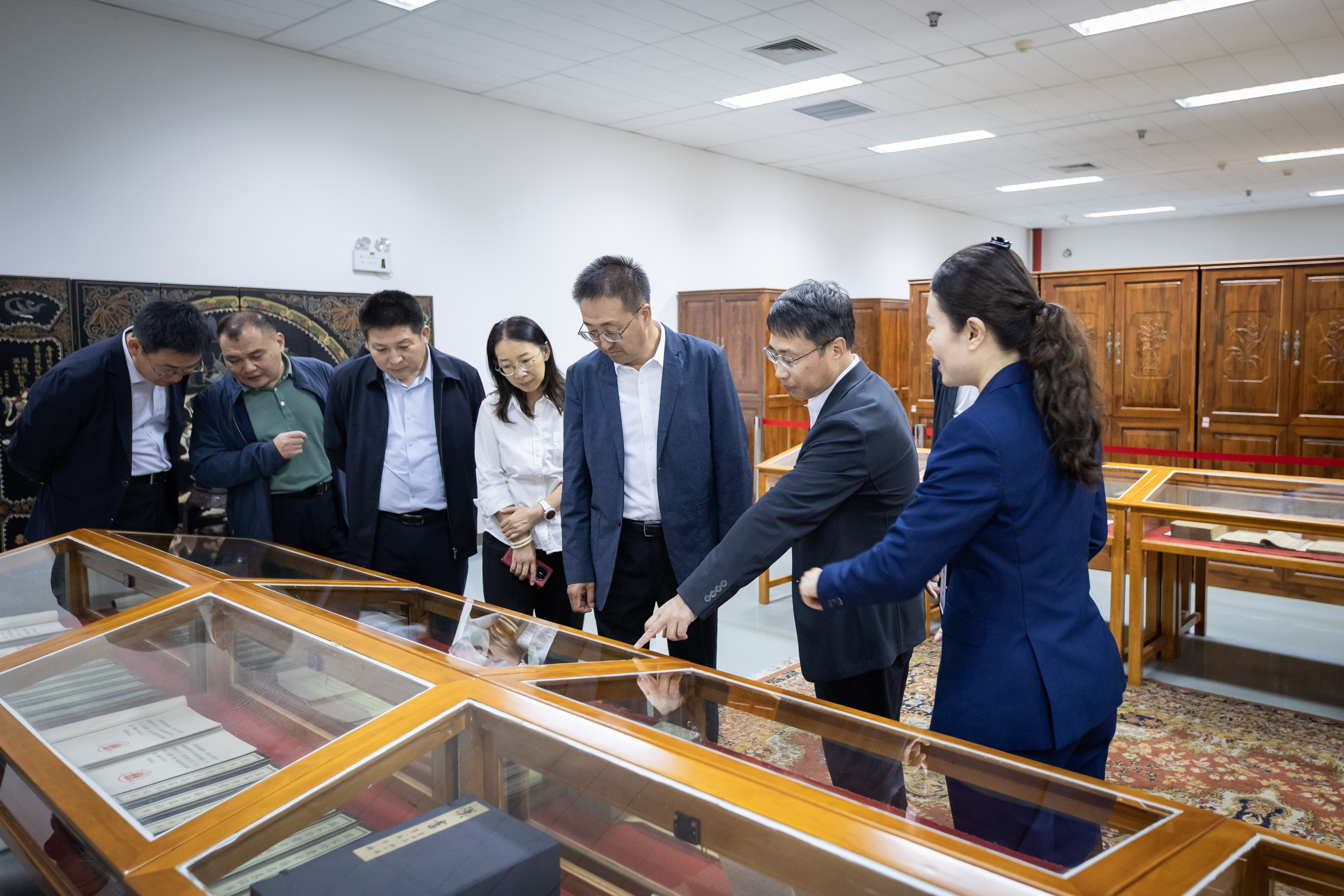 会前,成涛一行参观了学校校史馆、古籍室。(图/马骞 杜英杰)