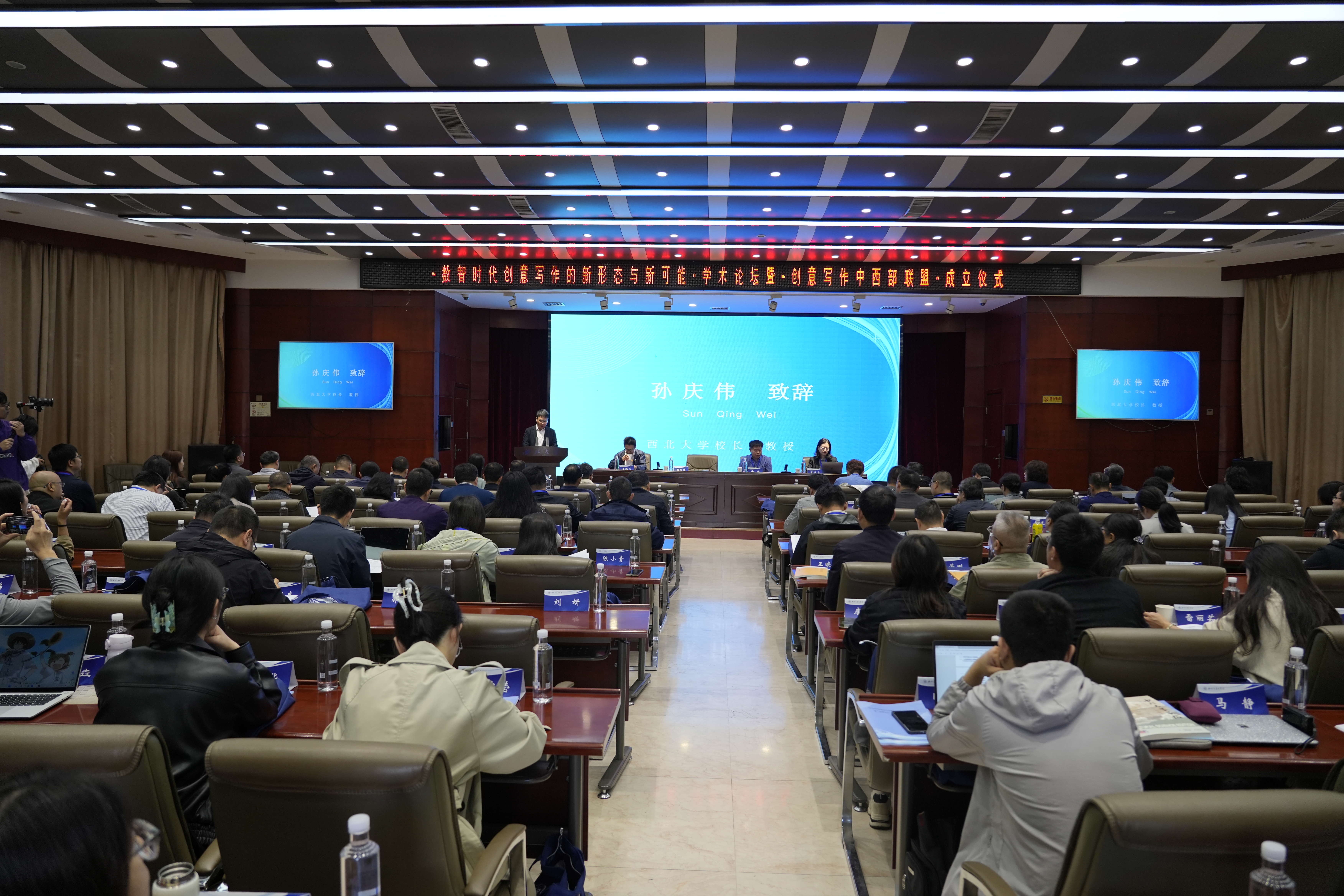 9月20日至21日,由我校文学院、陕西省大学语文研究会主办,高等教育出版社协办的“数智时代创意写作的新形态与新可能”学术论坛暨“创意写作中西部联盟”成立仪式在我校太白校区举行。世界华文创意写作协会副会长、东北师范大学教授徐强,高等教育出版社上海事业部文科分社社长张晶晶,我校校长孙庆伟出席了本次论坛。来自全国60余所高校、研究机构和文化单位的150余名与会代表齐聚西安,聚焦数智时代创意写作教育变革、应用场景、写作伦理等问题,共同探讨新时代创意写作的中国路径与创新可能。开幕式由文学院谷鹏飞教授主持。