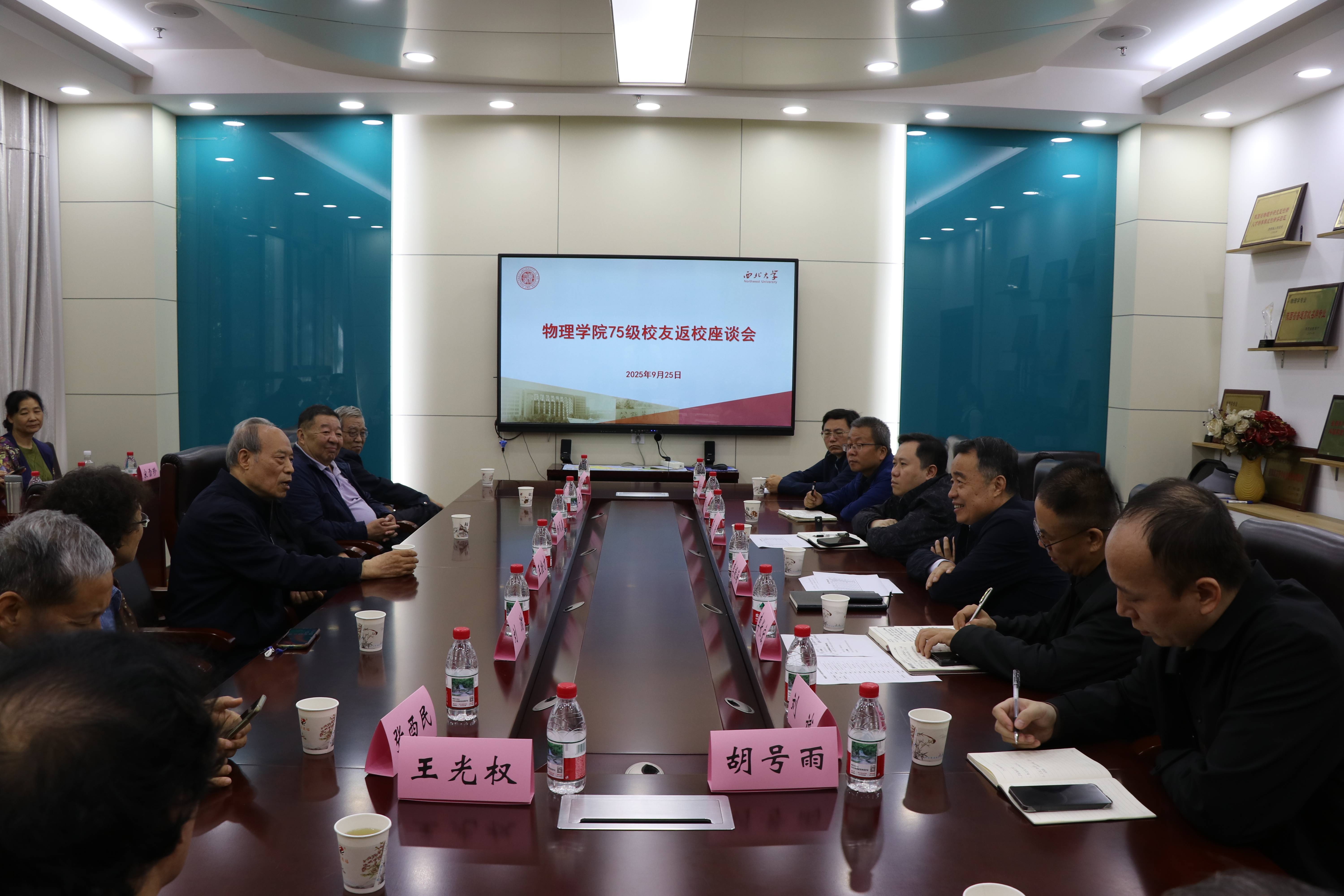 9月25日,我校物理学院1975级半导体专业校友在入校50周年之际重返母校,追忆青春岁月,共叙师生情谊。校党委常委、副校长李振海,时任班主任、西安美术学院原党委书记王栓才,国内处、物理学院负责人参加座谈会。