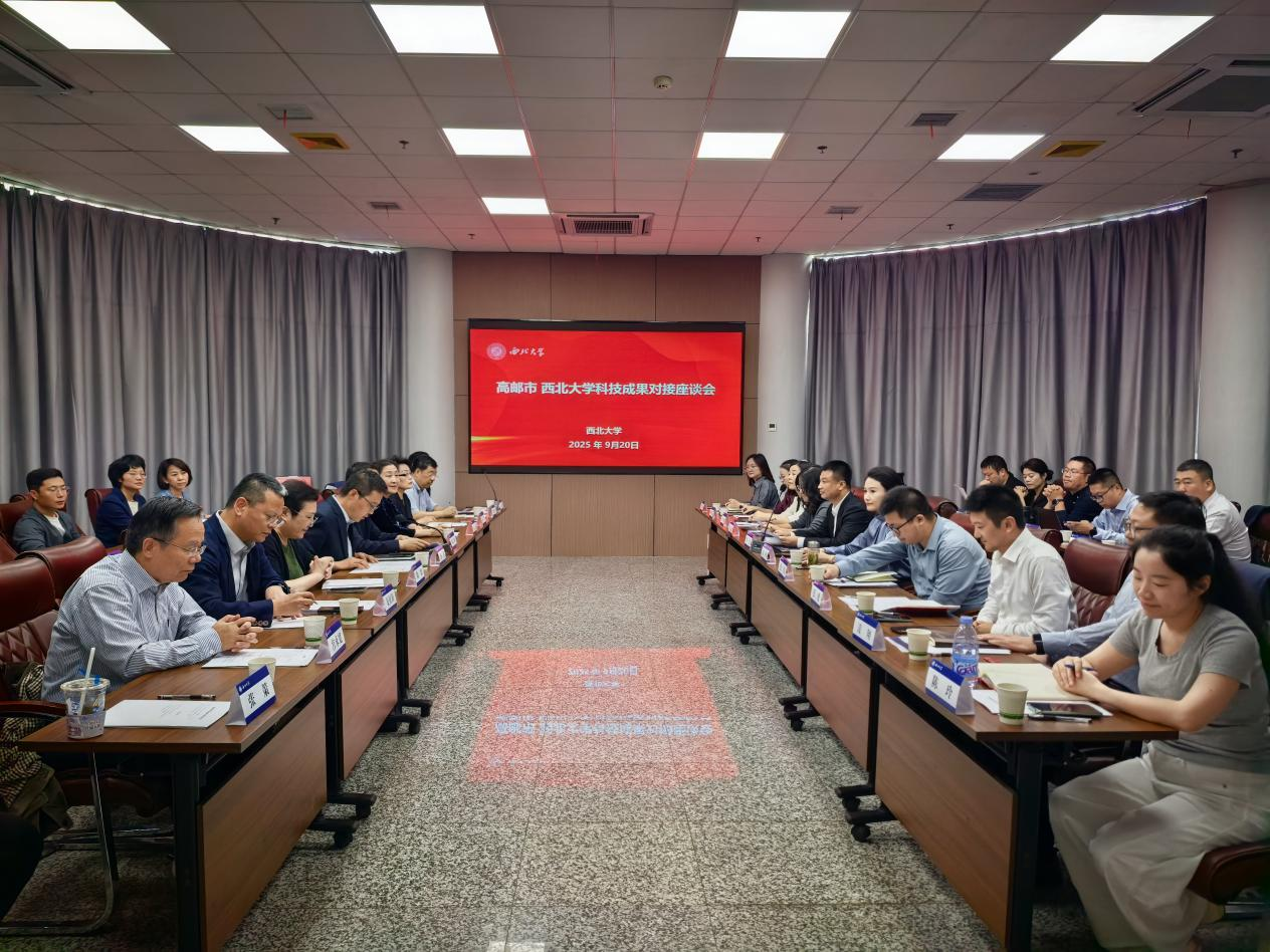 近期,高邮市委副书记李伟一行来校调研科技成果转化。陕西九州生物医药科技集团陕西省细胞药物创新中心主任、陕西省干细胞学会理事长王茜,陕鼓集团副总经理、陕鼓动力销售副总监安征海,玖沣睿新私募基金管理有限公司董事长陶娟,我校校党委常委、副校长陈富林,科技处负责人,教师代表参加座谈。