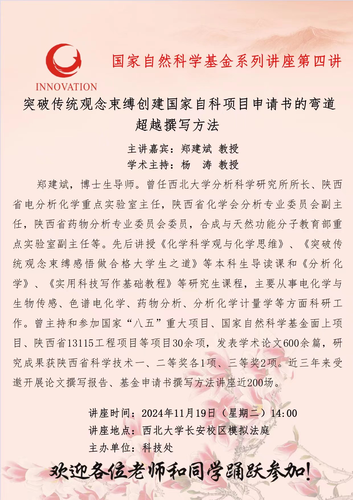 关于举办国家自然科学基金申报辅导系列讲座第四讲的通知