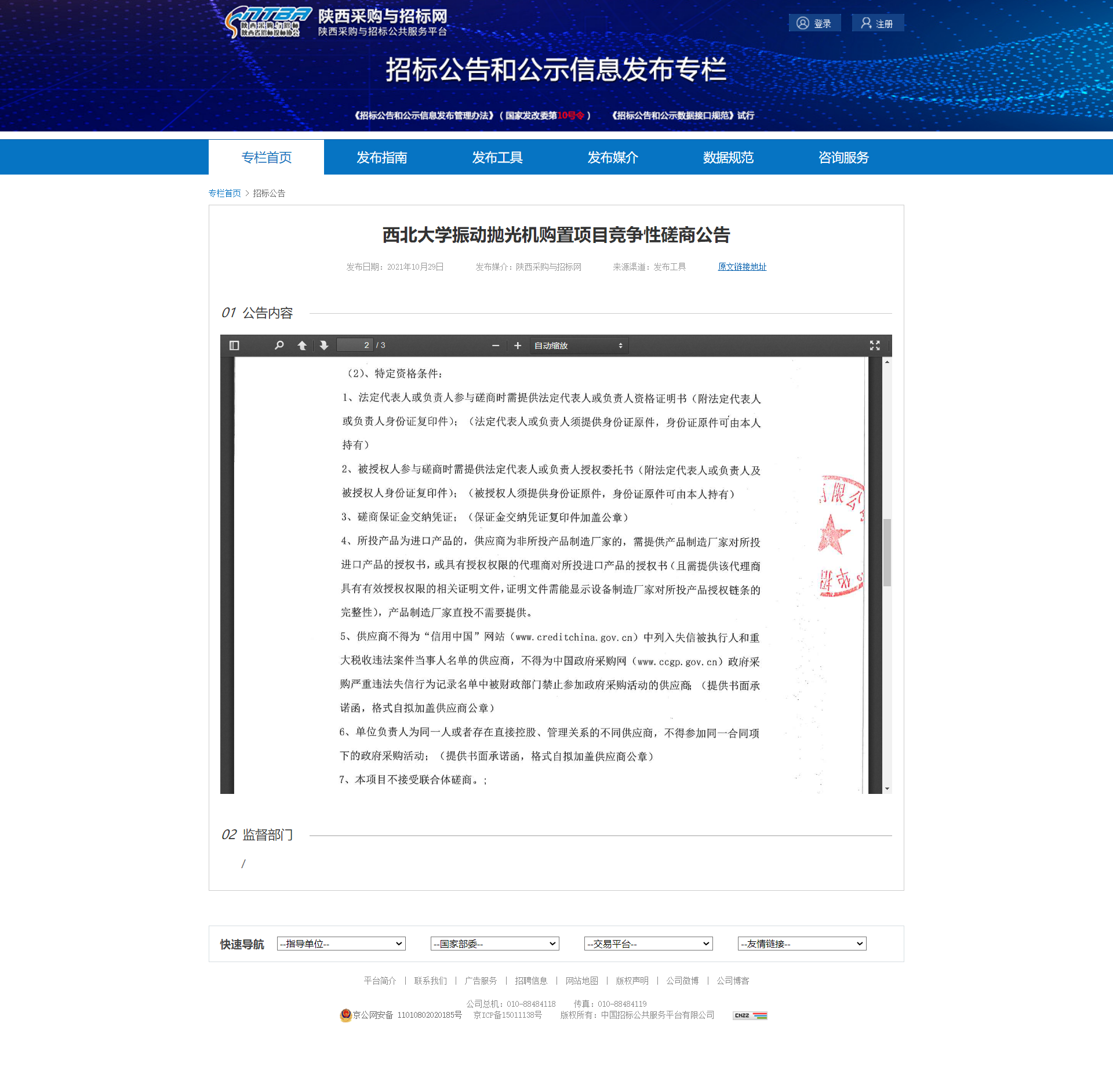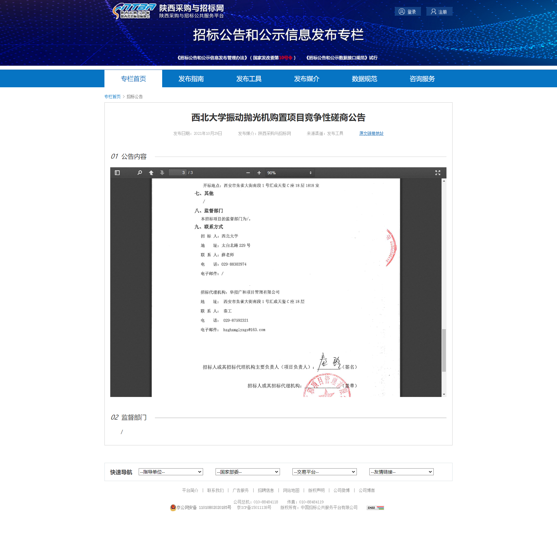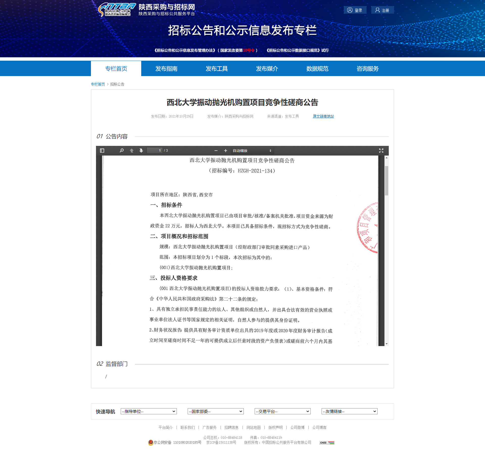 西北大学振动抛光机购置项目竞争性磋商公告 作者: 编辑:薛利娟 时间:2021-10-29 原公告地址:http://bulletin.sntba.com/biddingBulletin/2021-10-29/358519.html