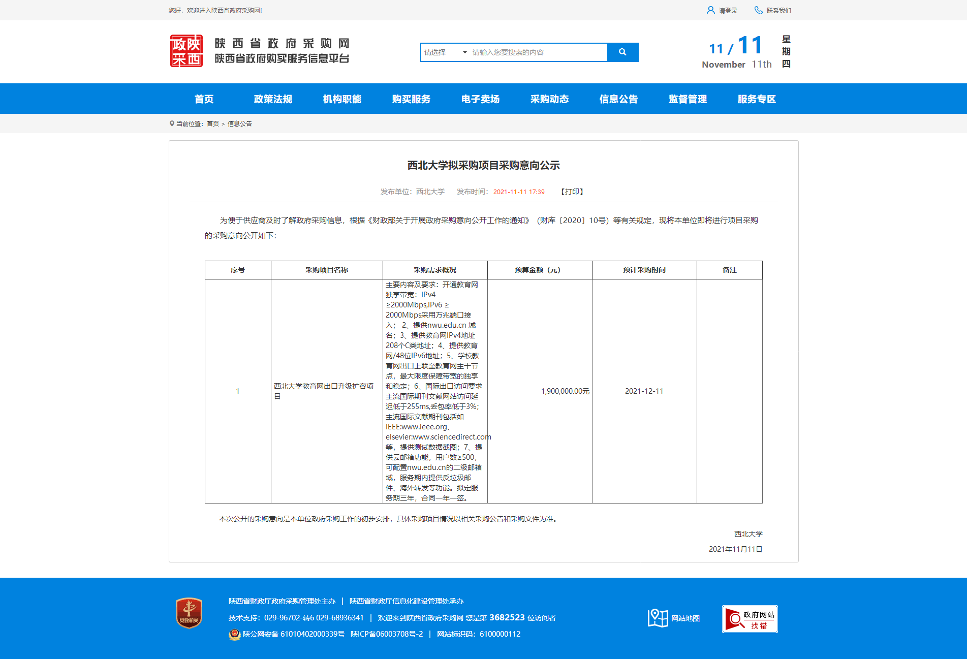 西北大学拟采购项目采购意向公示