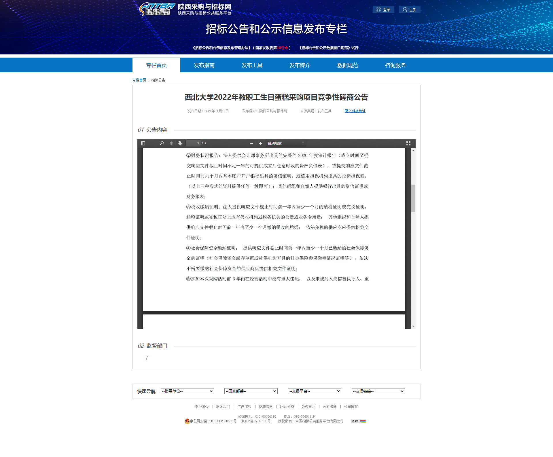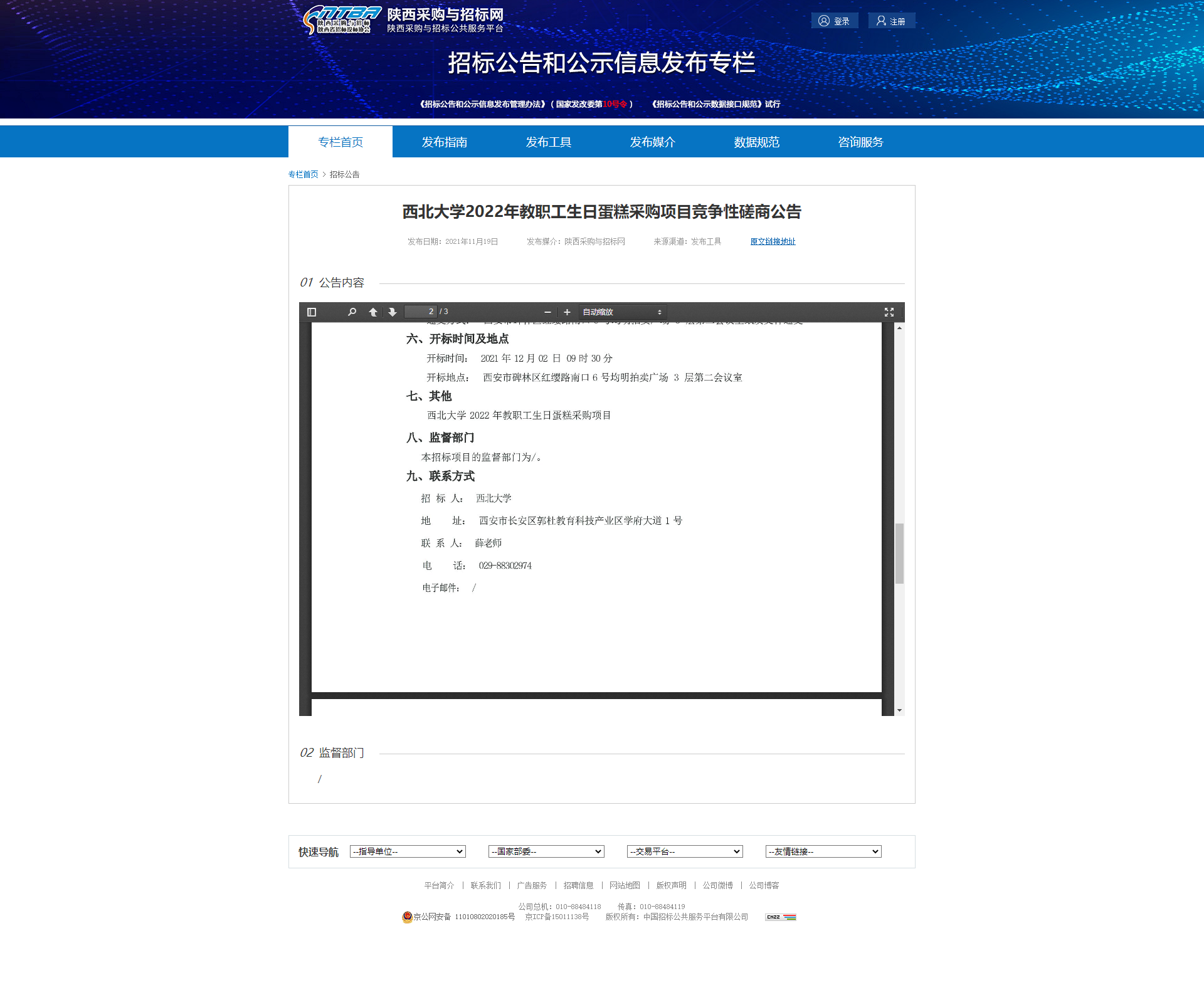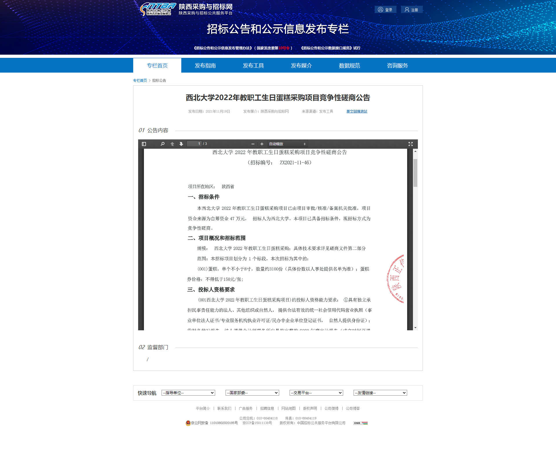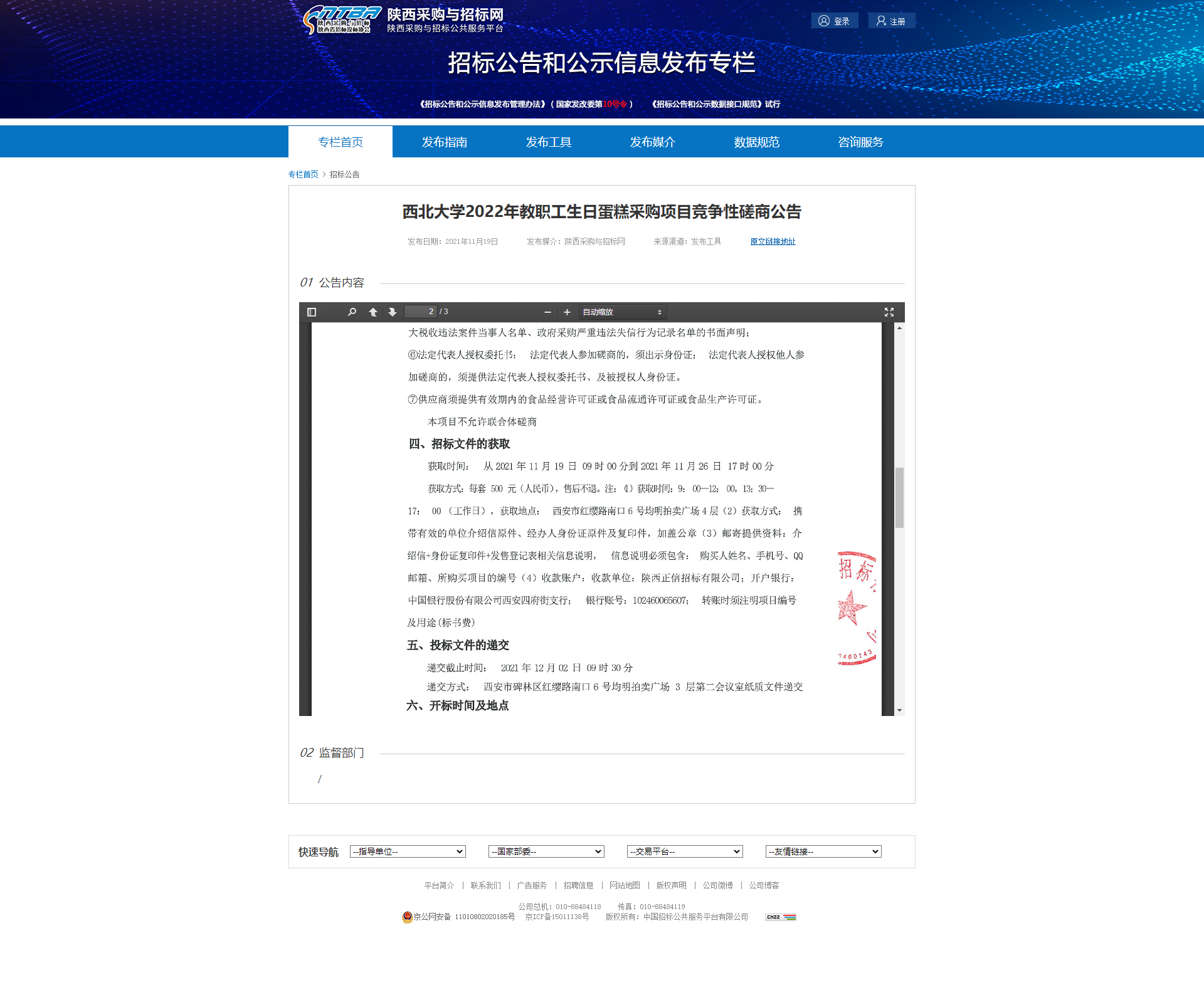 西北大学2022年教职工生日蛋糕采购项目竞争性磋商公告 作者: 编辑:薛利娟 时间:2021-11-19 原公告链接:http://bulletin.sntba.com/biddingBulletin/2021-11-19/366319.html