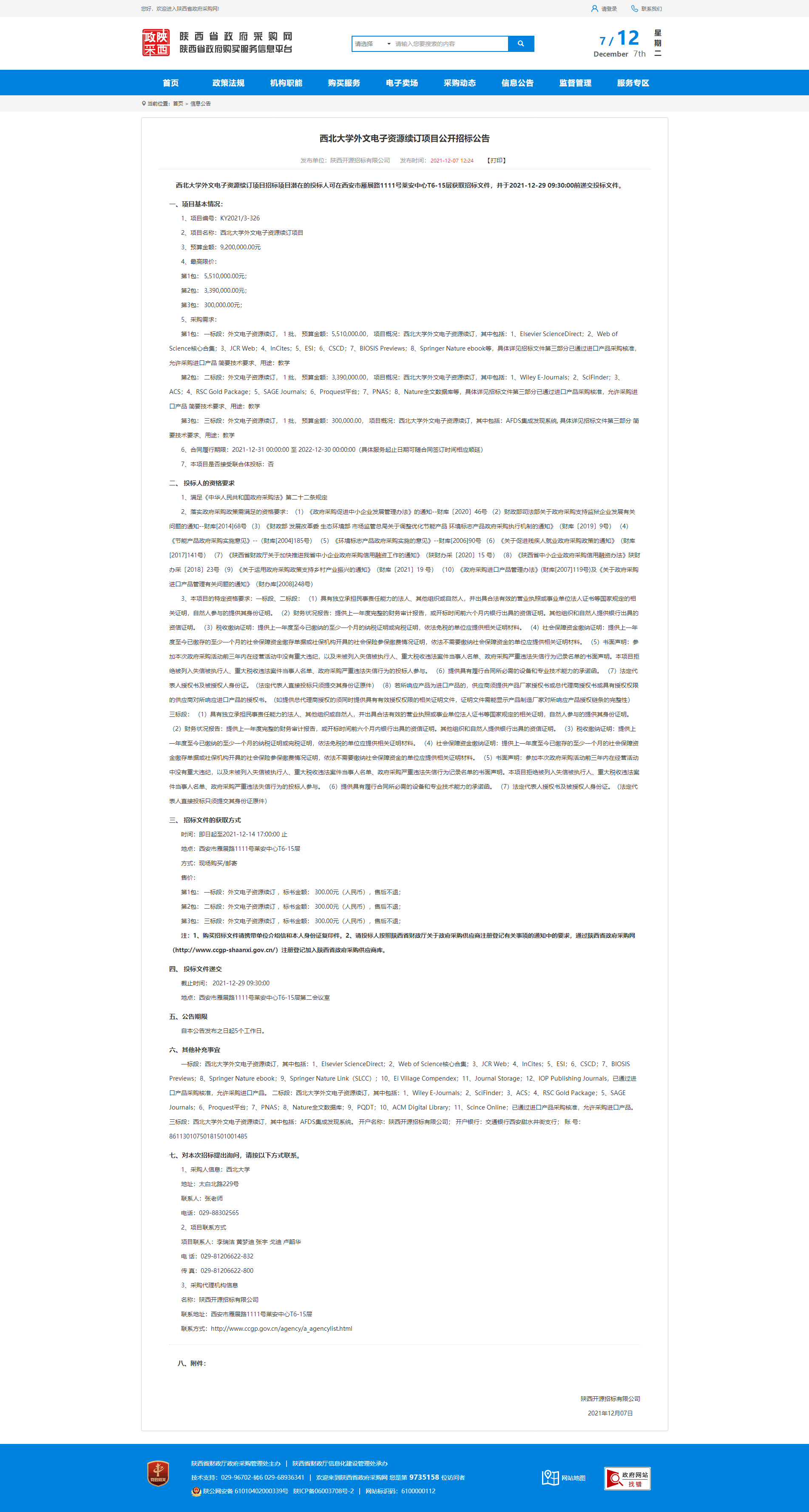 西北大学外文电子资源续订项目公开招标公告