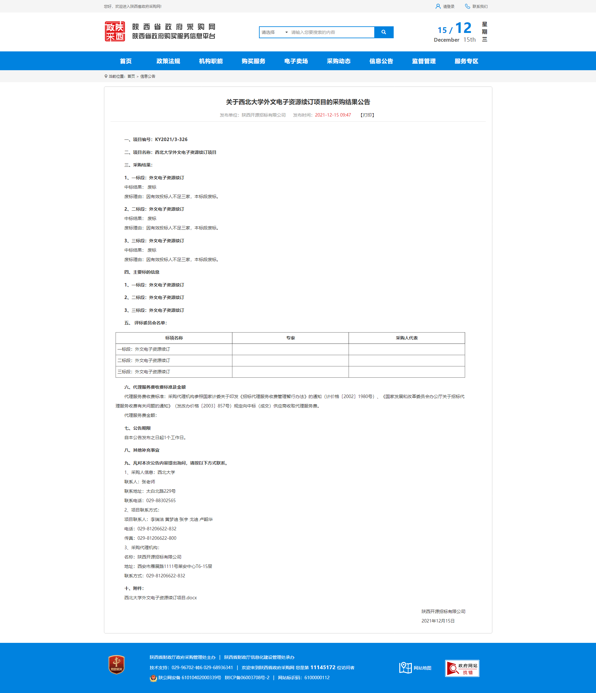 西北大学气-液-固高温高压模拟反应系统采购项目采购结果公告
