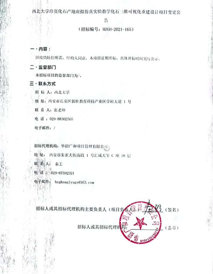 西北大学珍贵化石产地虚拟仿真实验教学化石三维可视化重建设计项目变更公告