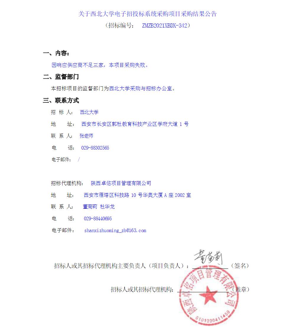 关于西北大学电子招投标系统采购项目采购结果公告