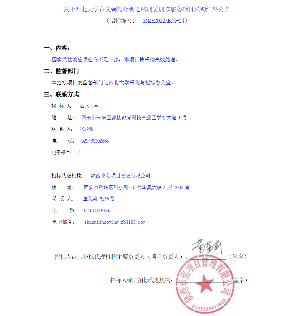 关于西北大学黄文弼与丝绸之路展览展陈服务项目采购结果公告