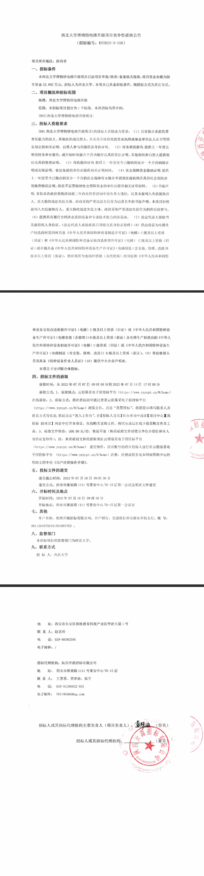 西北大学博物馆电梯升级项目竞争性磋商公告