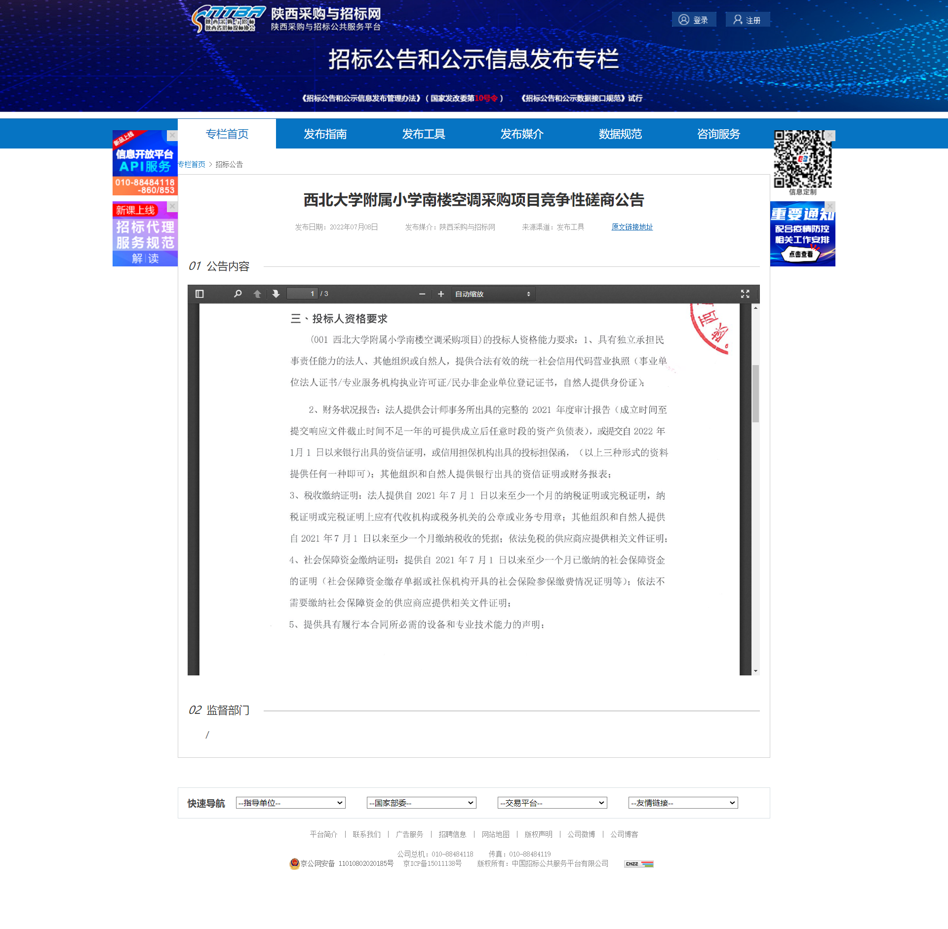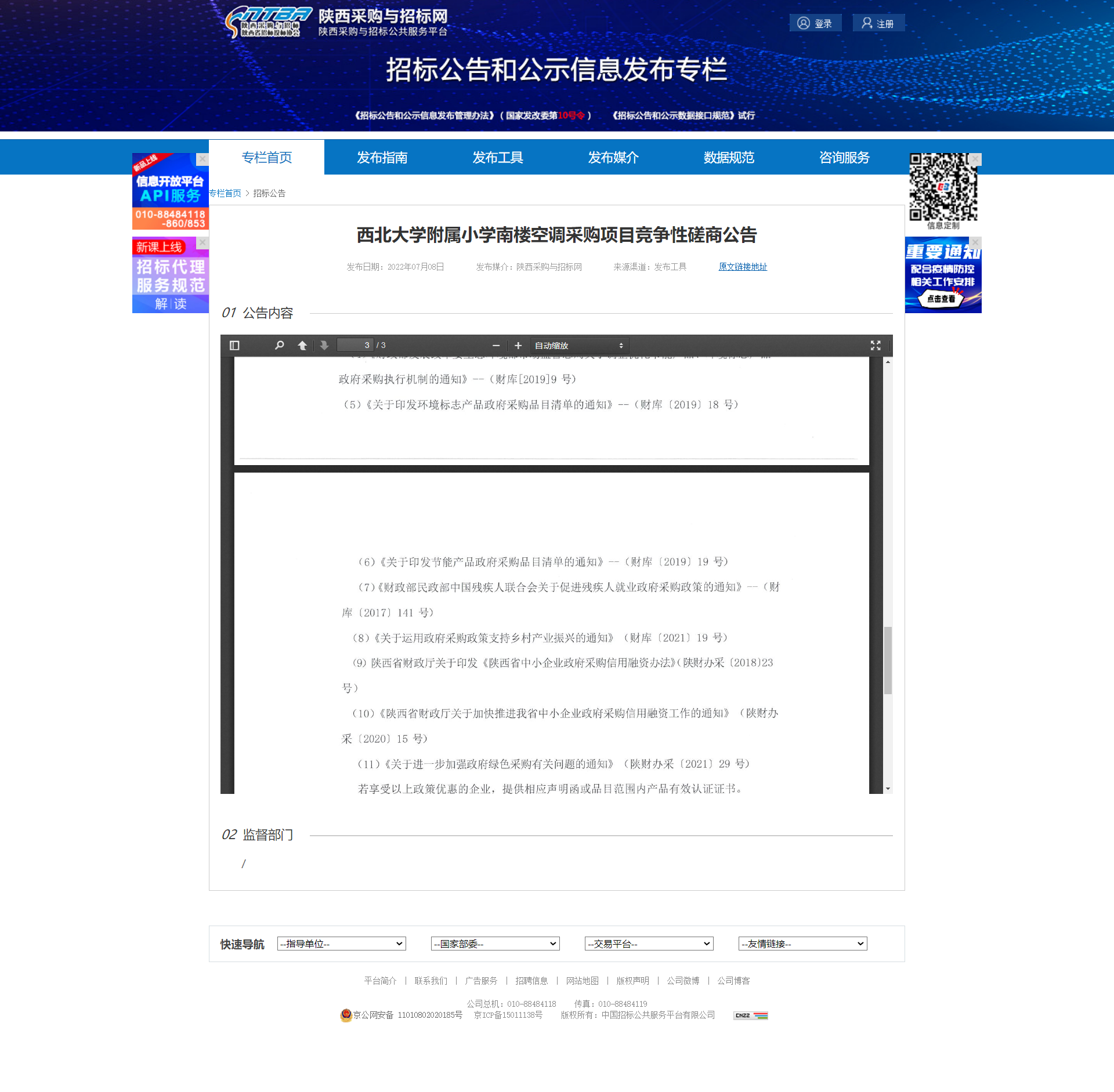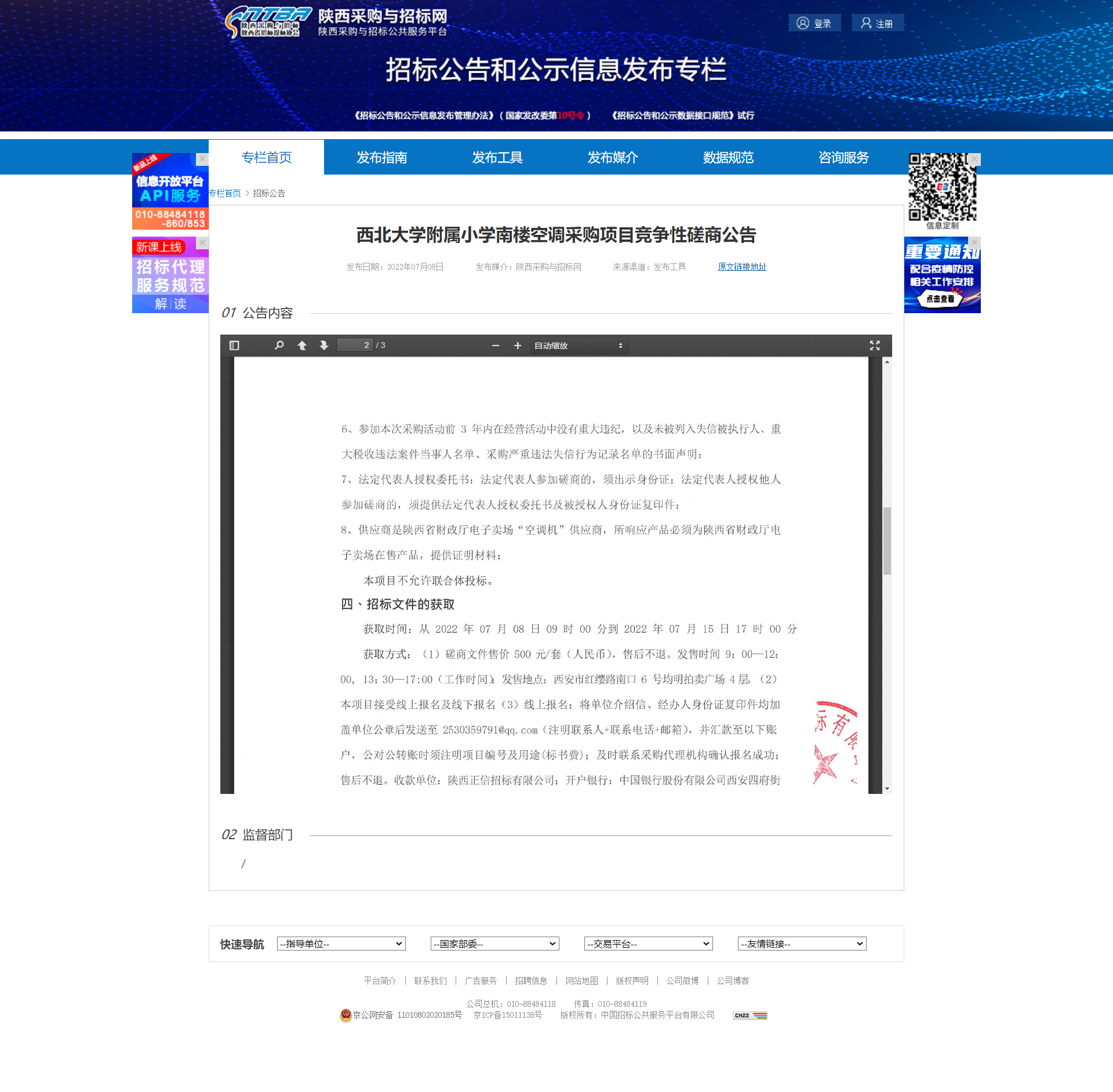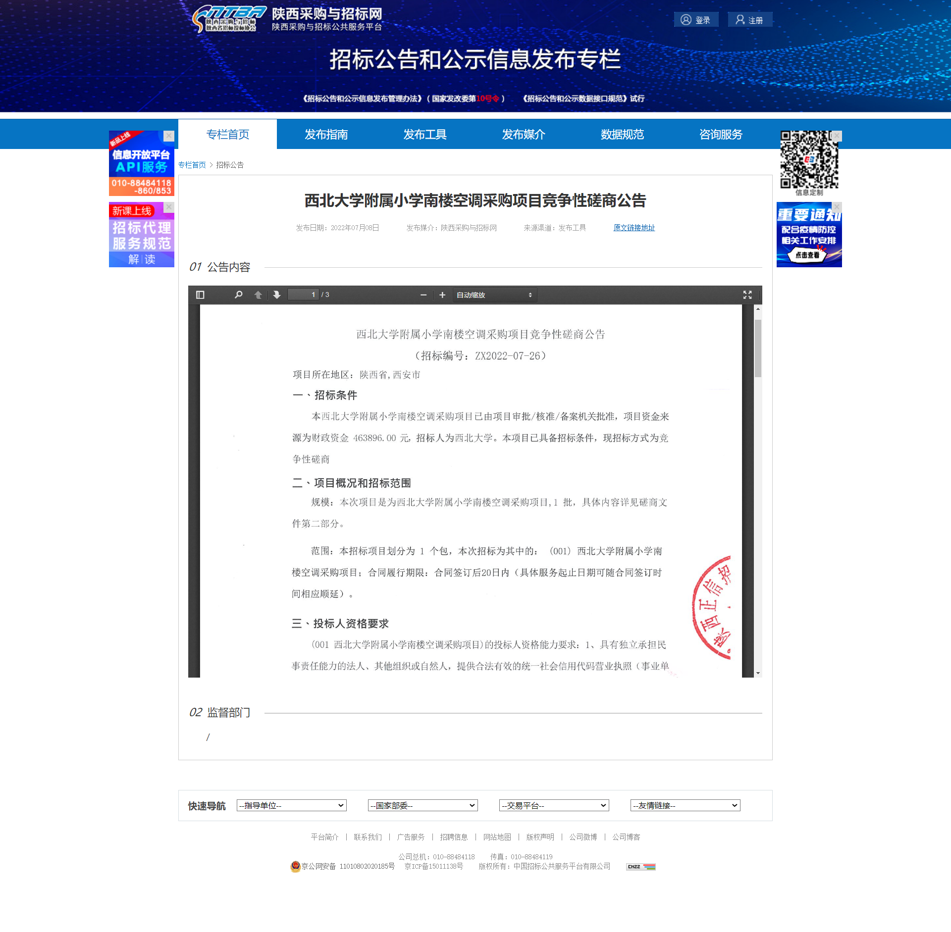 西北大学附属小学南楼空调采购项目竞争性磋商公告 作者: 编辑:薛利娟 时间:2022-07-08 原公告链接:http://bulletin.sntba.com/biddingBulletin/2022-07-08/445113.html