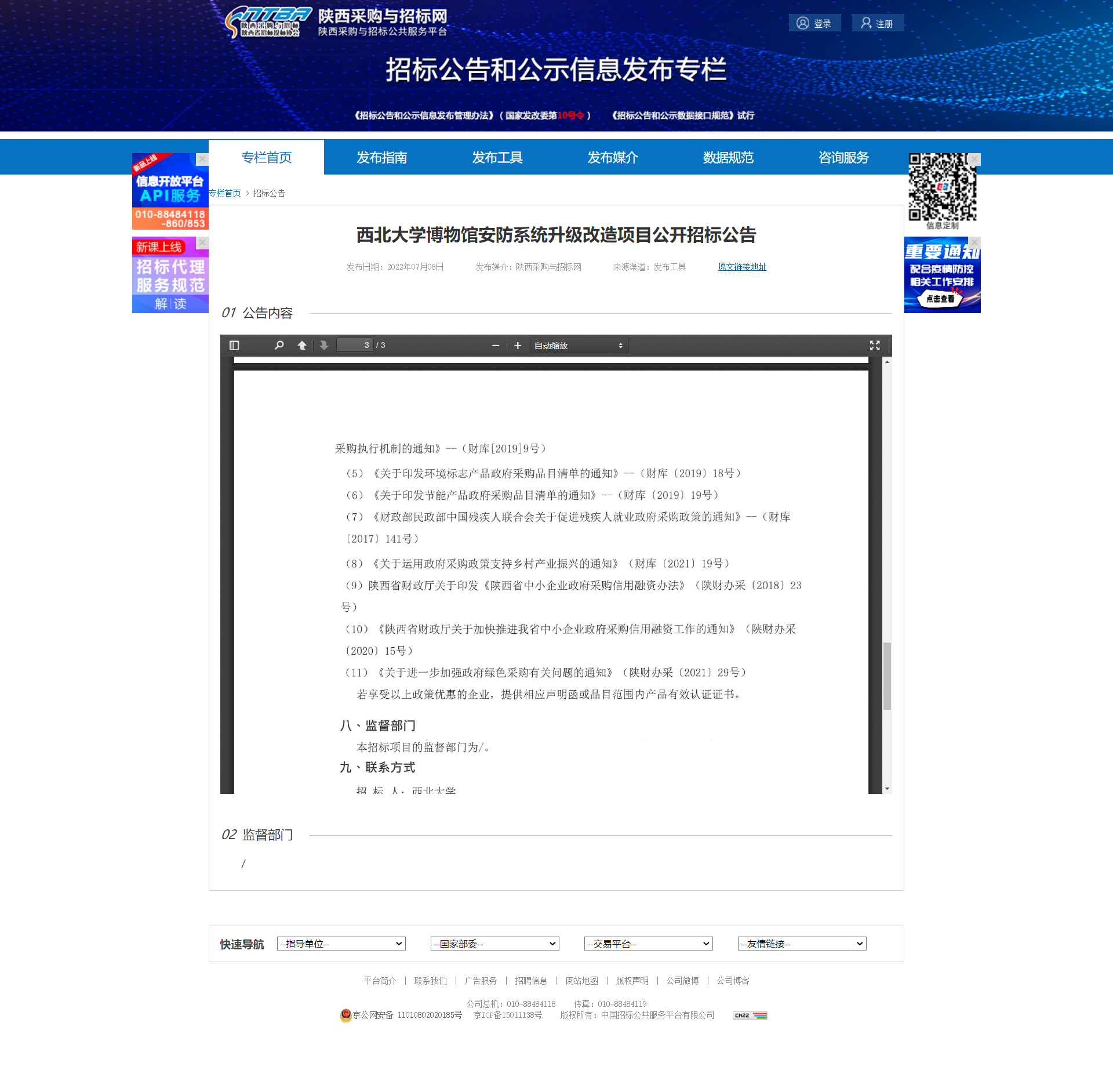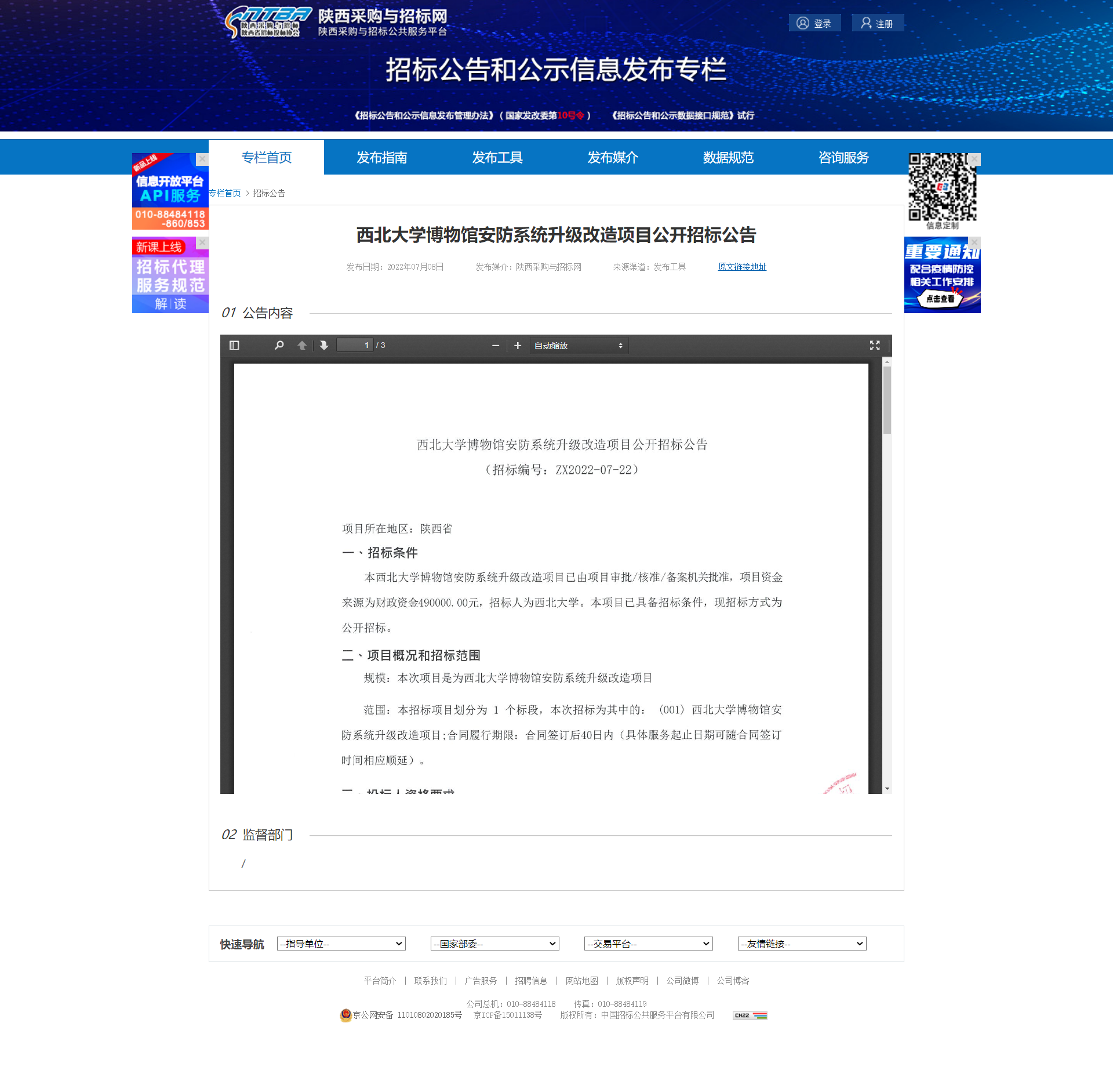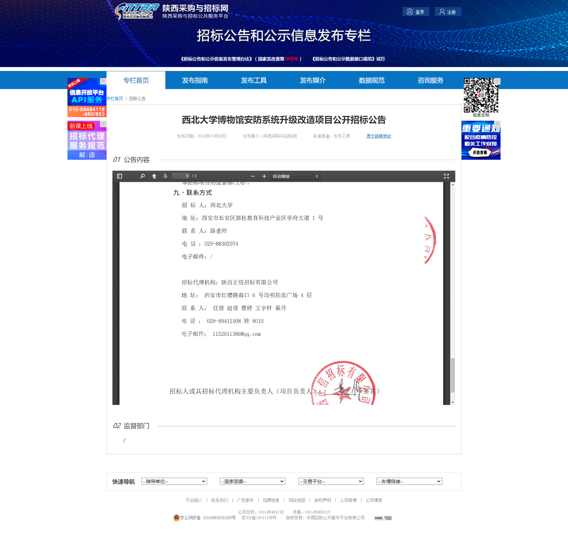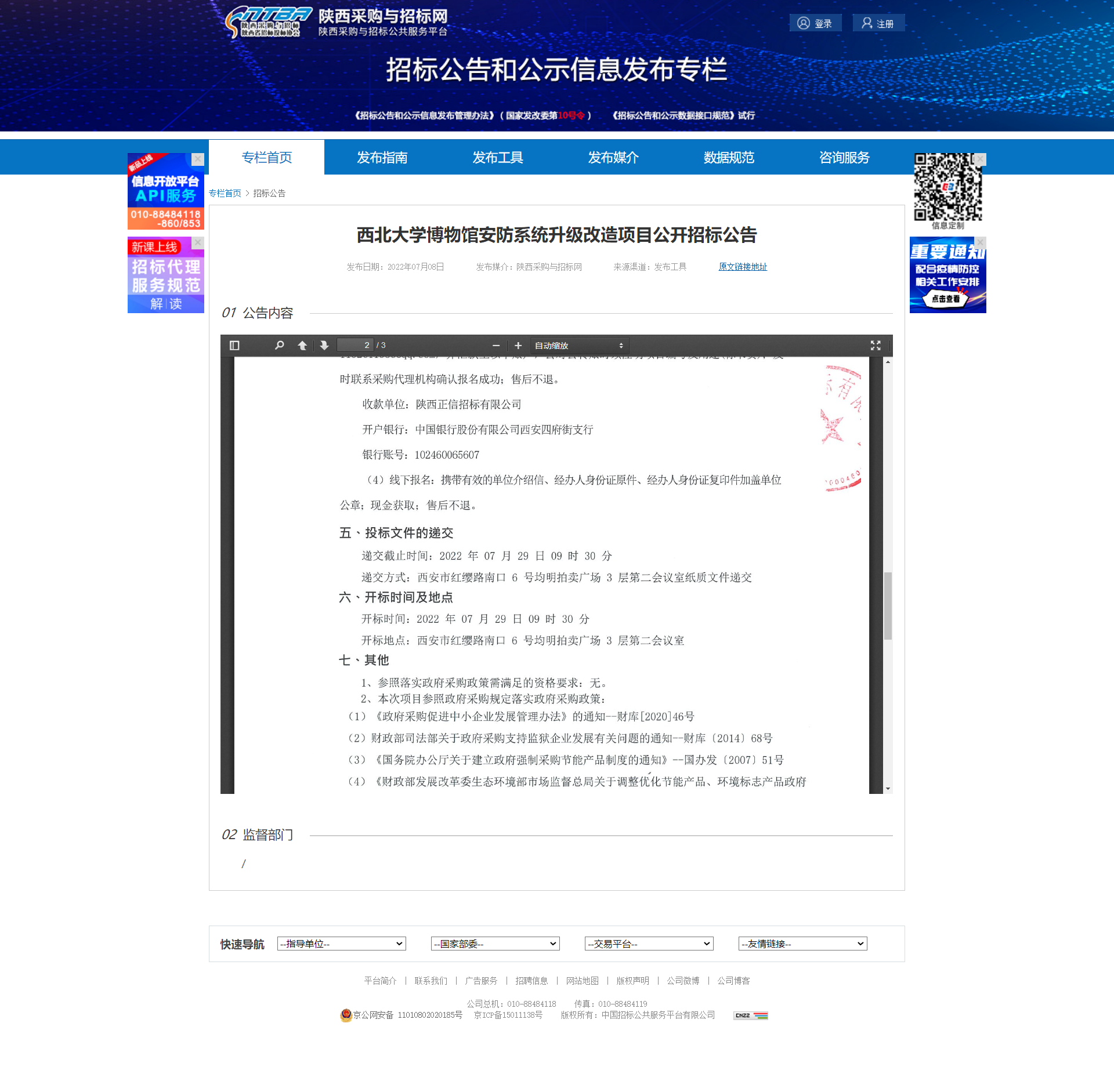 西北大学博物馆安防系统升级改造项目公开招标公告 作者: 编辑:薛利娟 时间:2022-07-08 原公告链接:http://bulletin.sntba.com/biddingBulletin/2022-07-08/445128.html