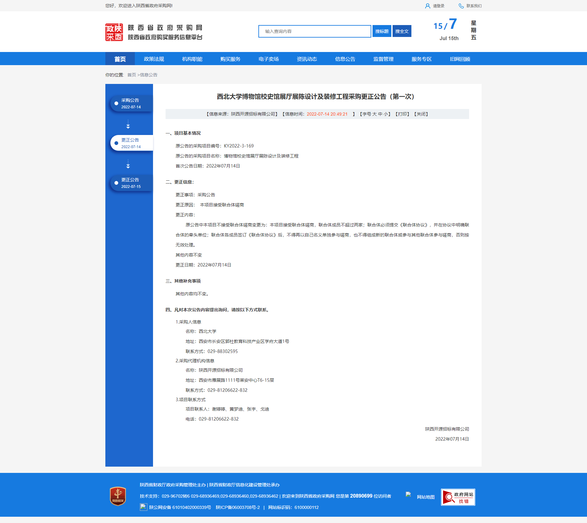 西北大学博物馆校史馆展厅展陈设计及装修工程采购更正公告(第二次)