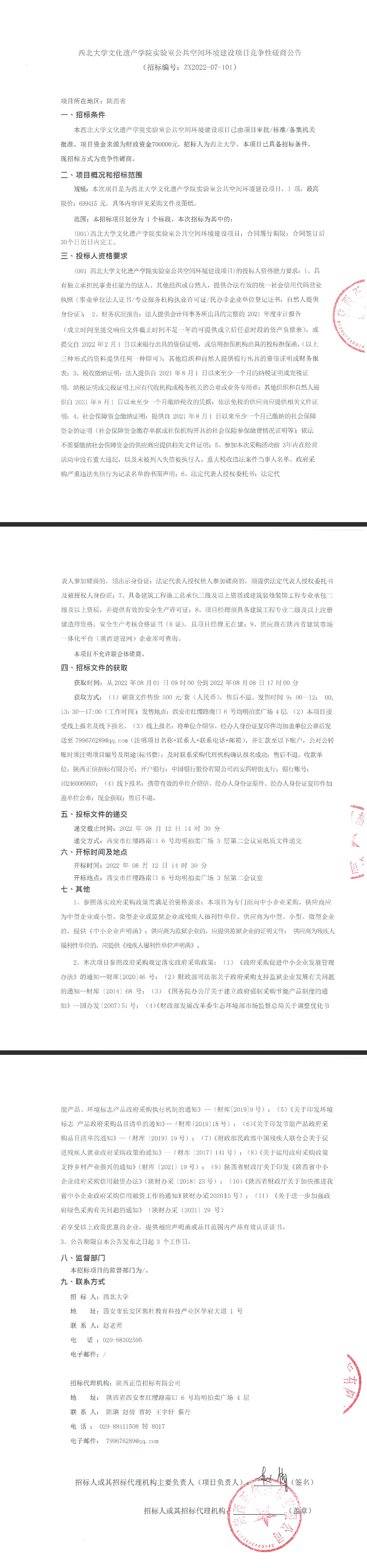 西北大学文化遗产学院实验室公共空间环境建设项目竞争性磋商公告