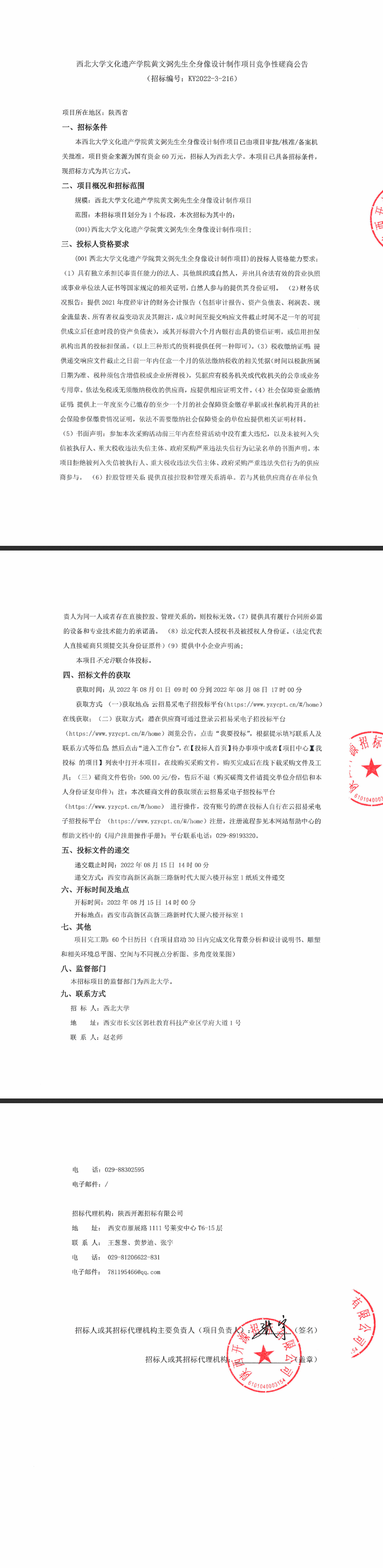 西北大学文化遗产学院黄文弼先生全身像设计制作项目竞争性磋商公告