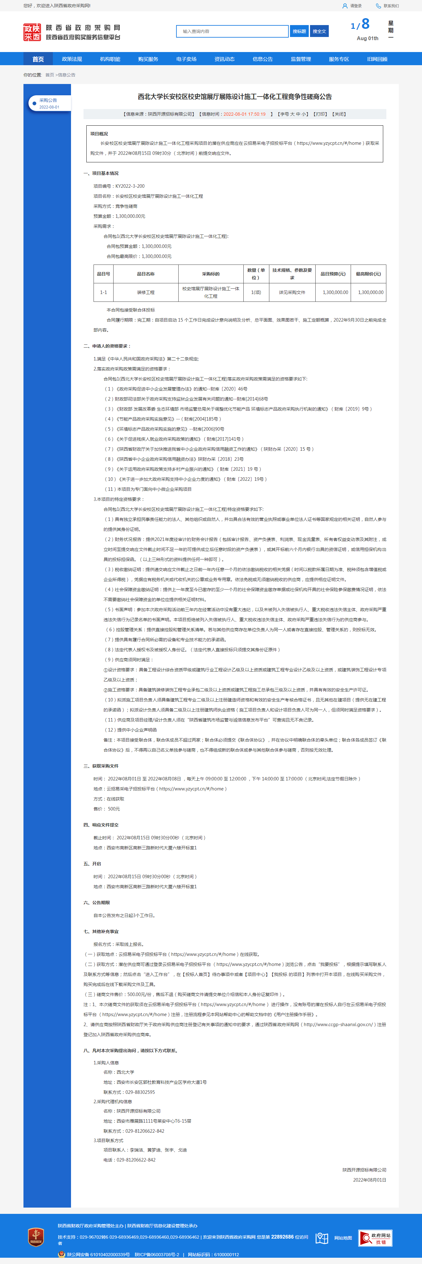西北大学长安校区校史馆展厅展陈设计施工一体化工程竞争性磋商公告