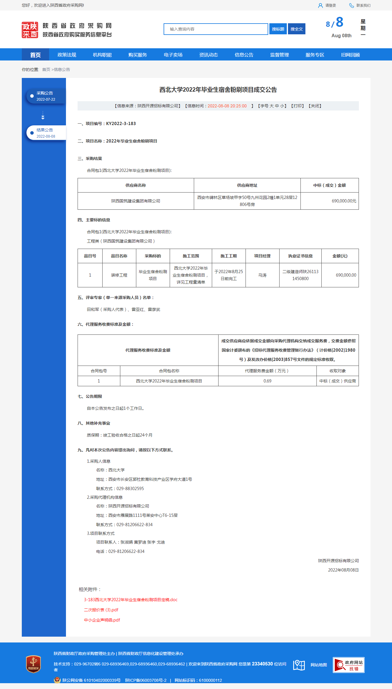 西北大学2022年毕业生宿舍粉刷项目成交公告
