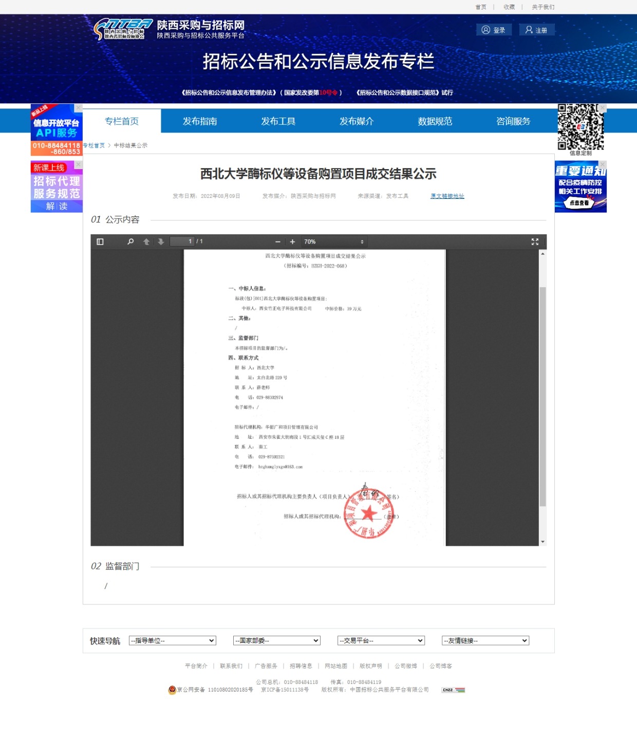 西北大学酶标仪等设备购置项目成交结果公示 作者: 编辑:采购与招标办公室 时间:2022-08-09 原公告链接:http://bulletin.sntba.com/resultBulletin/2022-08-09/459046.html