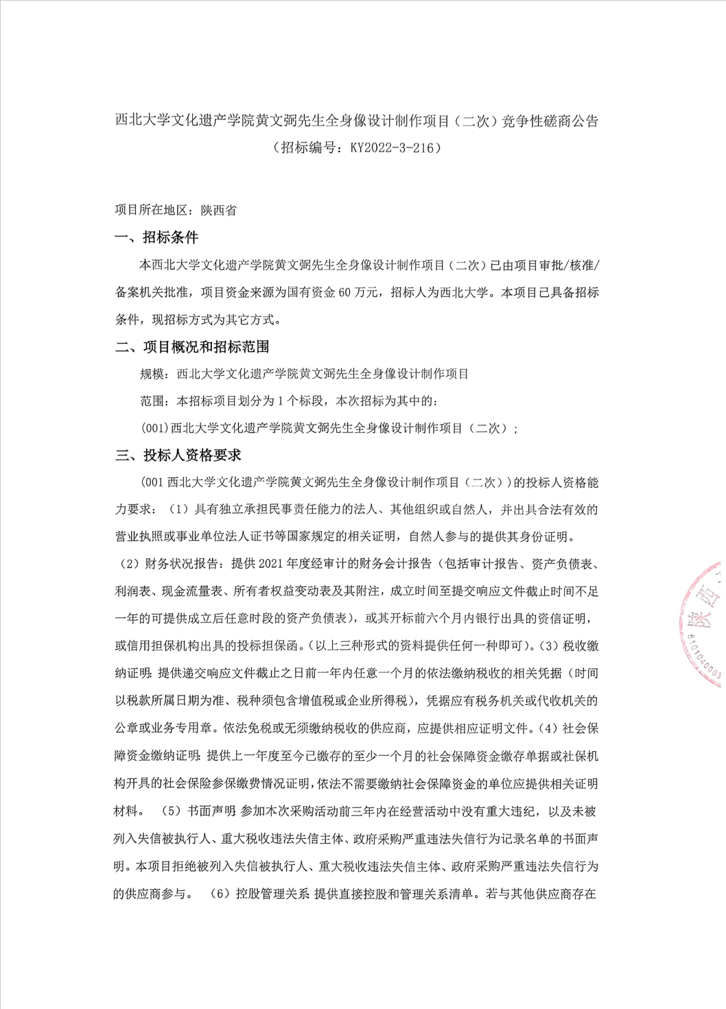 西北大学文化遗产学院黄文弼先生全身像设计制作项目(二次)竞争性磋商公告
