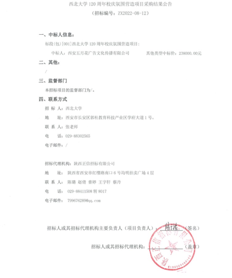 西北大学120周年校庆氛围营造项目采购结果公告