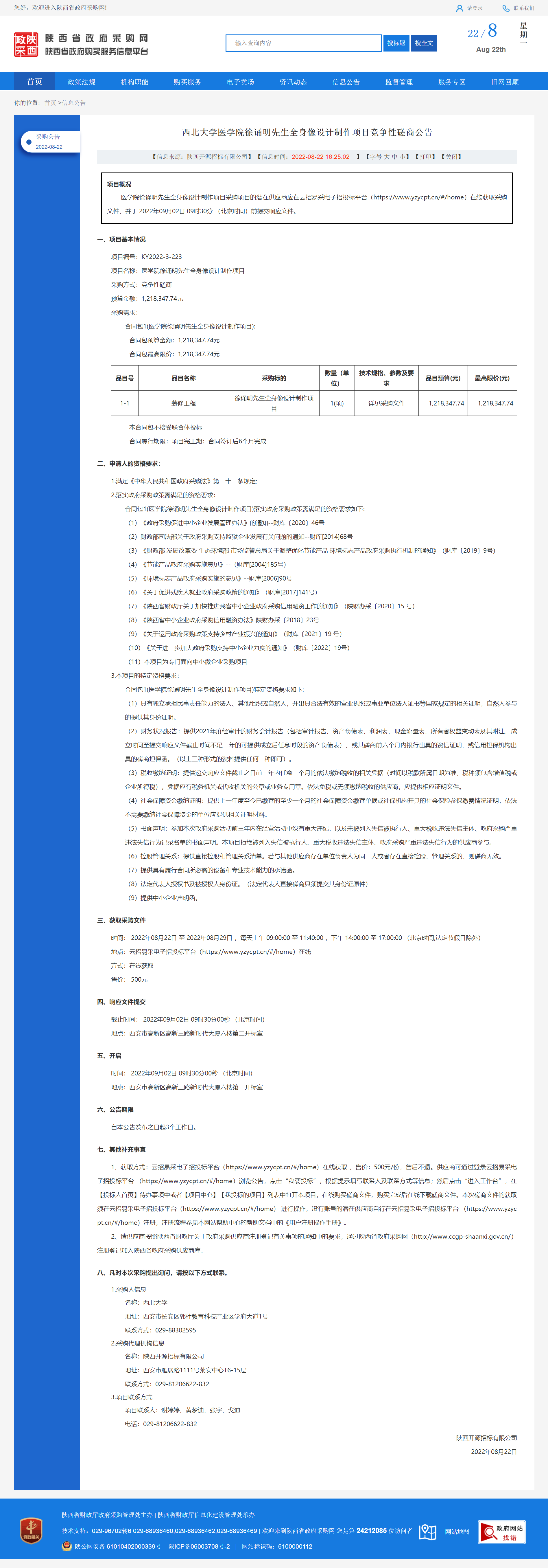 西北大学医学院徐诵明先生全身像设计制作项目竞争性磋商公告