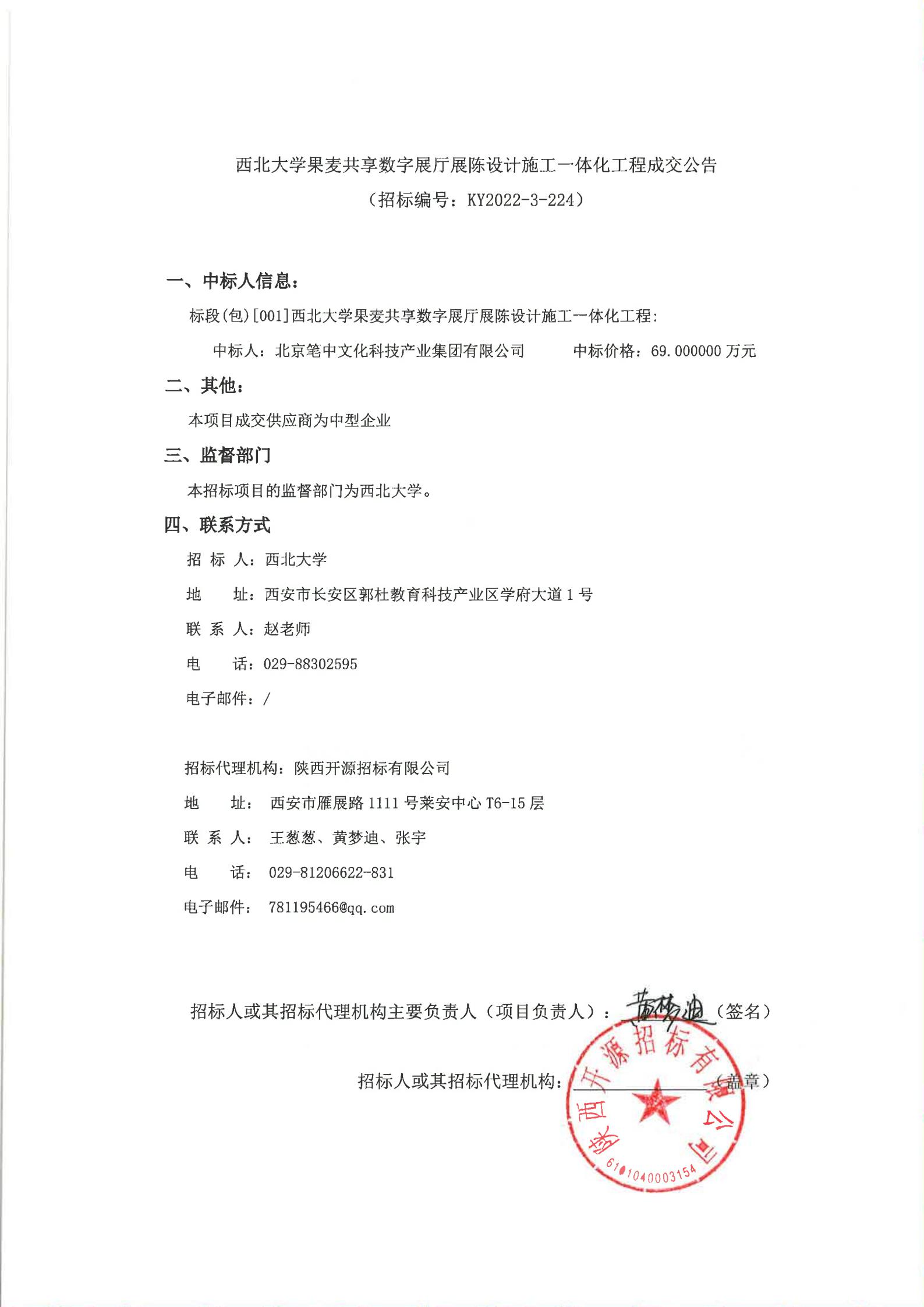 西北大学果麦共享数字展厅展陈设计施工一体化工程成交公告