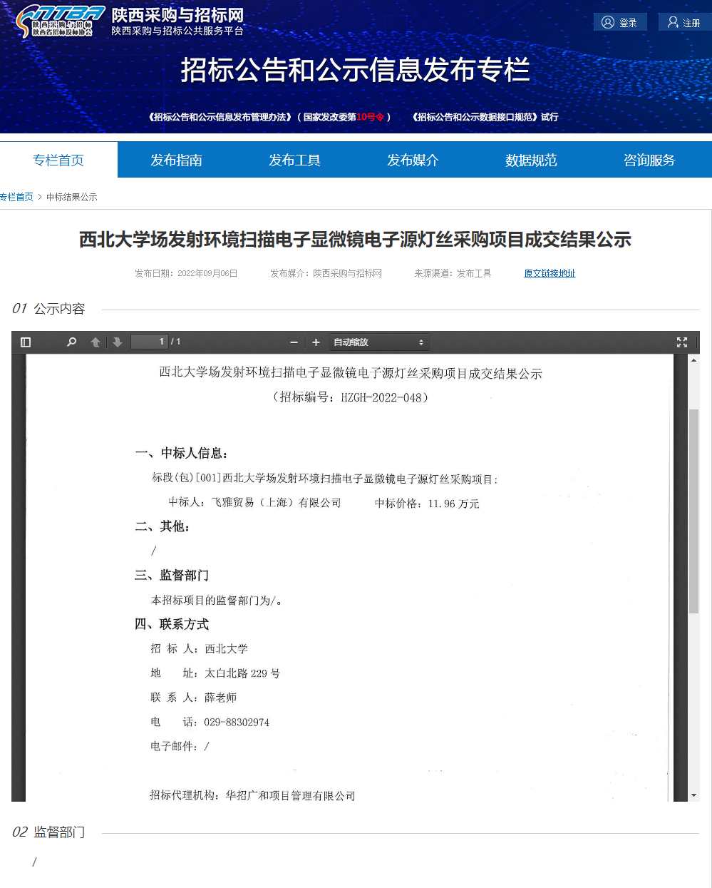 西北大学场发射环境扫描电子显微镜电子源灯丝采购项目成交结果公示 作者: 编辑:采购与招标办公室 时间:2022-09-06 原公告链接:http://bulletin.sntba.com/resultBulletin/2022-09-06/471051.html