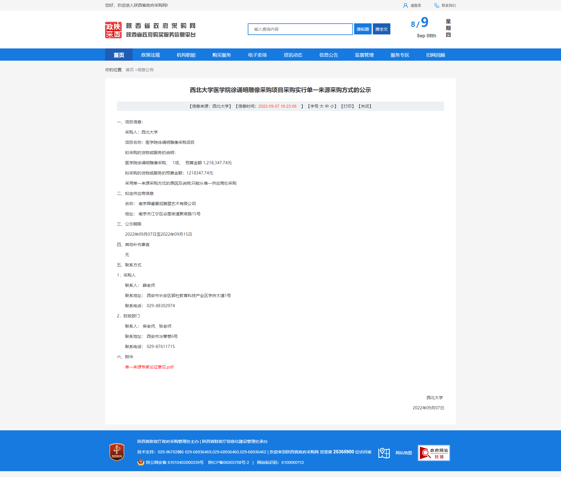 西北大学医学院徐诵明雕像采购项目采购实行单一来源采购方式的公示 作者: 编辑:采购与招标办公室 时间:2022-09-08 原公告链接:http://www.ccgp-shaanxi.gov.cn/freecms/site/shaanxi/ggxx/info/2022/8a69c4ad8315b364018316aed0342bd2.html?noticeType=001051¬iceId=c9dcf4ee-2e86-11ed-9a8e-08c0eb20c666