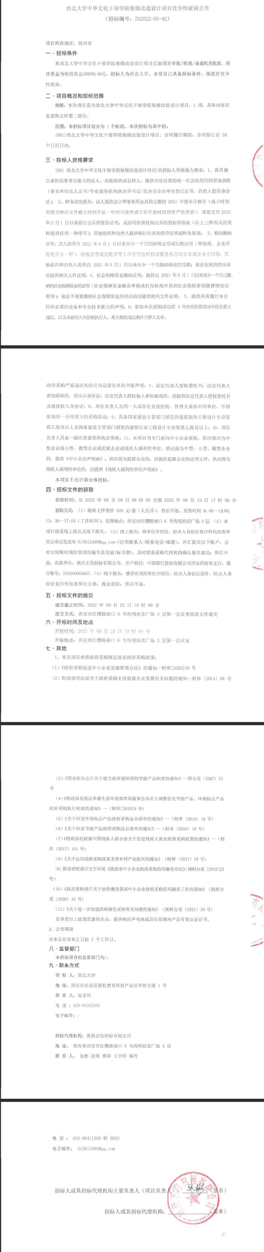 西北大学中华文化干部学院装修改造设计项目竞争性磋商公告