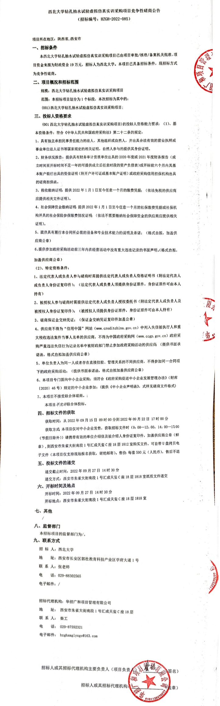 西北大学钻孔抽水试验虚拟仿真实训采购项目竞争性磋商公告