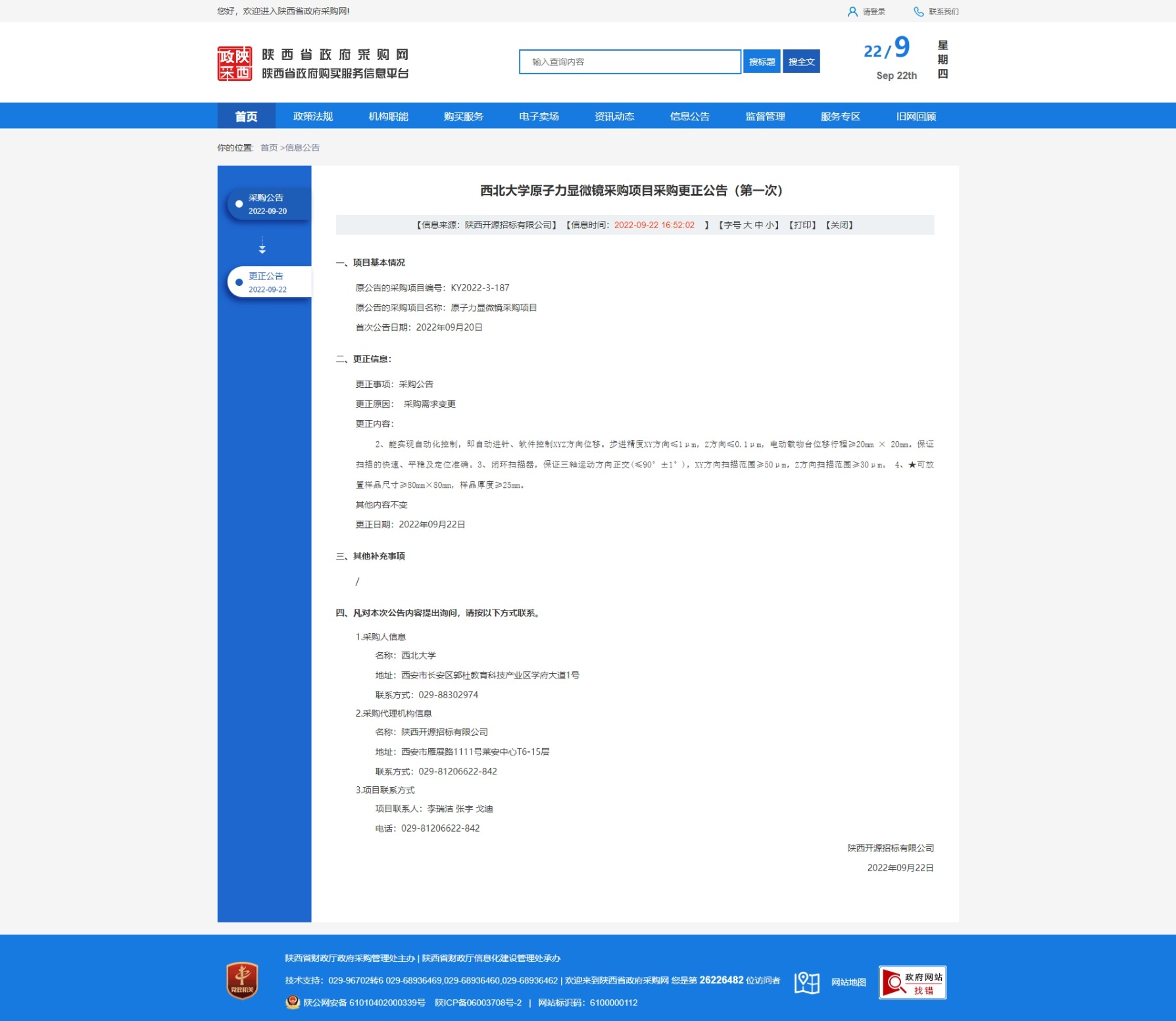 西北大学原子力显微镜采购项目采购更正公告 作者: 编辑:采购与招标办公室 时间:2022-09-22 原公告链接:http://www.ccgp-shaanxi.gov.cn/freecms/site/shaanxi/ggxx/info/2022/8a69c59682a320a40183643e1ba02b5a.html?noticeType=001031¬iceId=5a0f225c-3a54-11ed-9a8e-08c0eb20c666