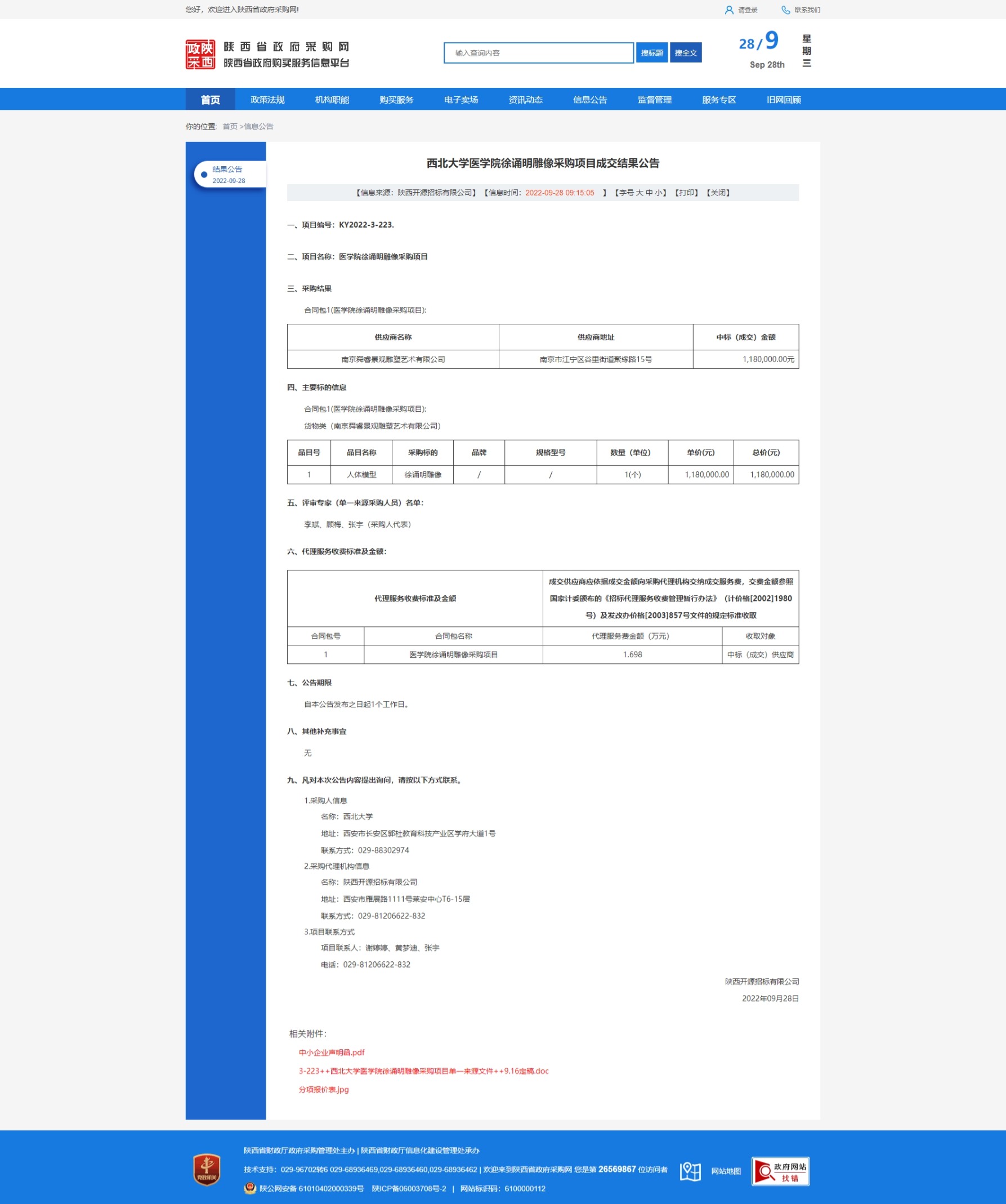 西北大学医学院徐诵明雕像采购项目成交结果公告 作者: 编辑:采购与招标办公室 时间:2022-09-28 原公告链接:http://www.ccgp-shaanxi.gov.cn/freecms/site/shaanxi/ggxx/info/2022/8a69c59682a320a401837f62d0c80746.html?noticeType=001025¬iceId=85d816df-3ecb-11ed-9a8e-08c0eb20c666