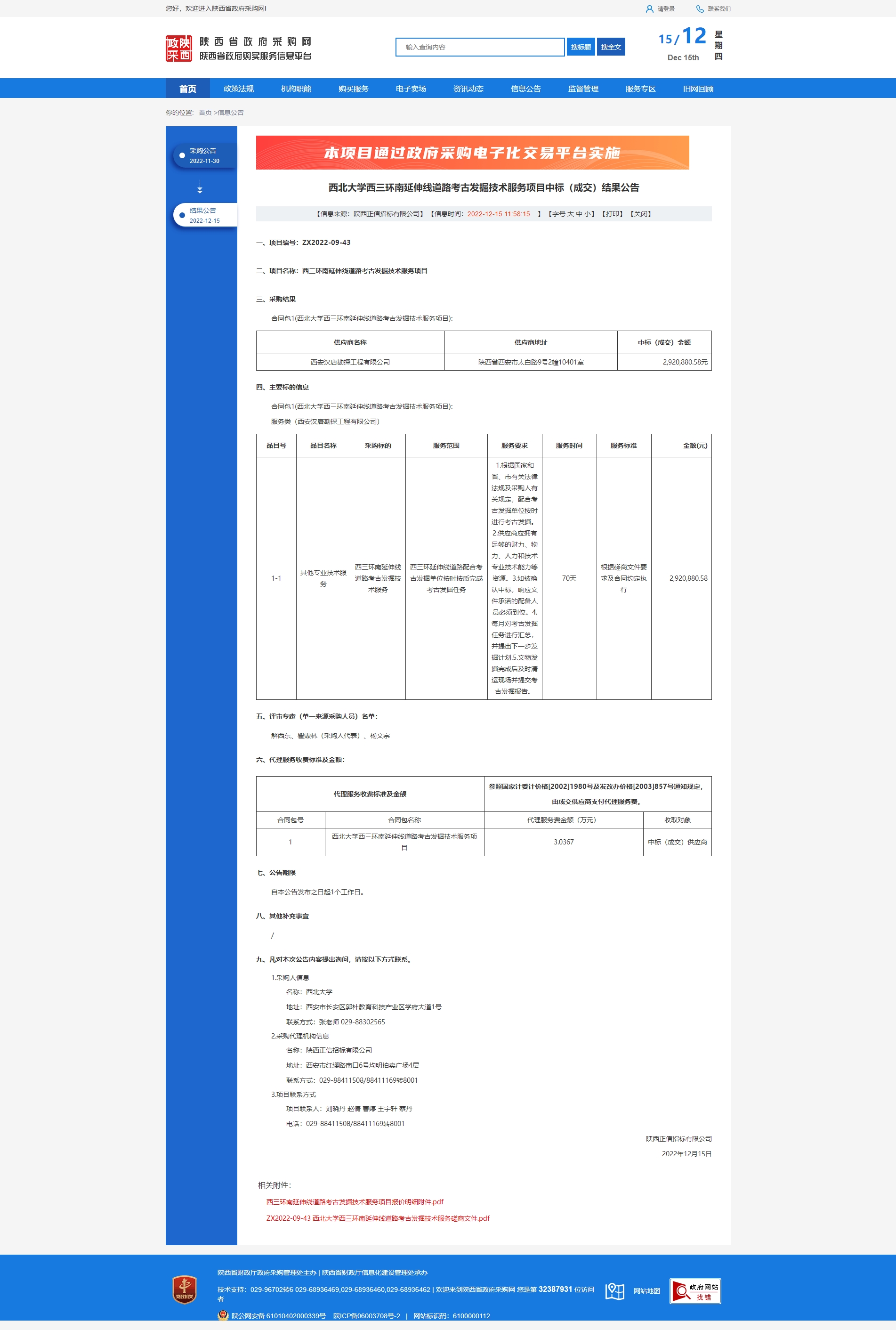 西北大学西三环南延伸线道路考古发掘技术服务项目中标(成交)结果公告
