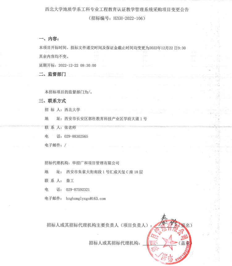 西北大学地质学系工科专业工程教育认证教学管理系统采购项目变更公告
