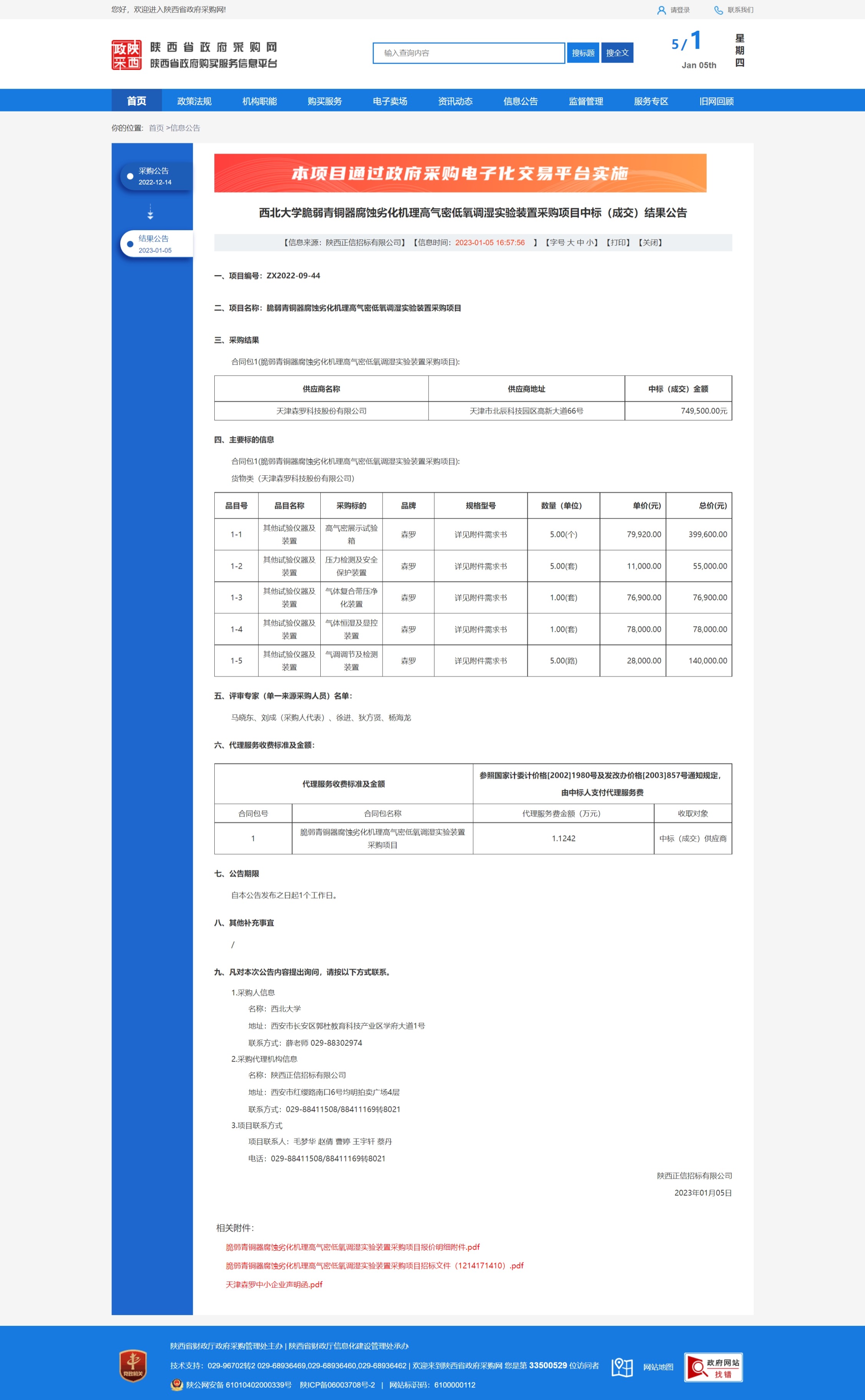 西北大学脆弱青铜器腐蚀劣化机理高气密低氧调湿实验装置采购项目中标(成交)结果公告 作者: 编辑:采购与招标办公室 时间:2023-01-05 原公告链接:http://www.ccgp-shaanxi.gov.cn/freecms/site/shaanxi/ggxx/info/2023/8a69c054852dbea601858077ea453bb3.html?noticeType=001021¬iceId=cbc8e5cb-8cd7-11ed-9a8e-08c0eb20c666