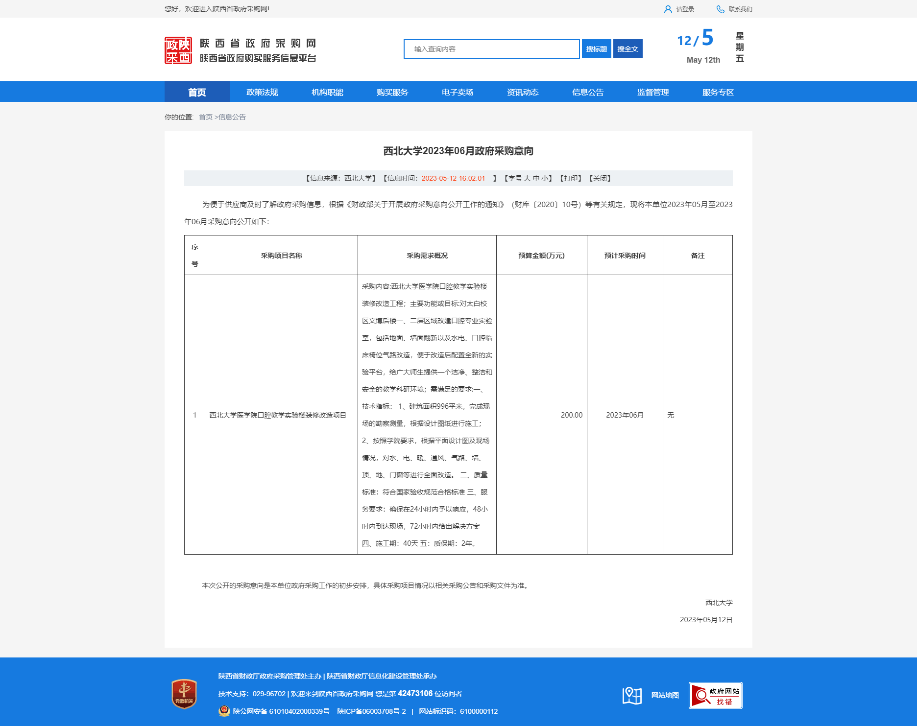 西北大学2023年06月政府采购意向