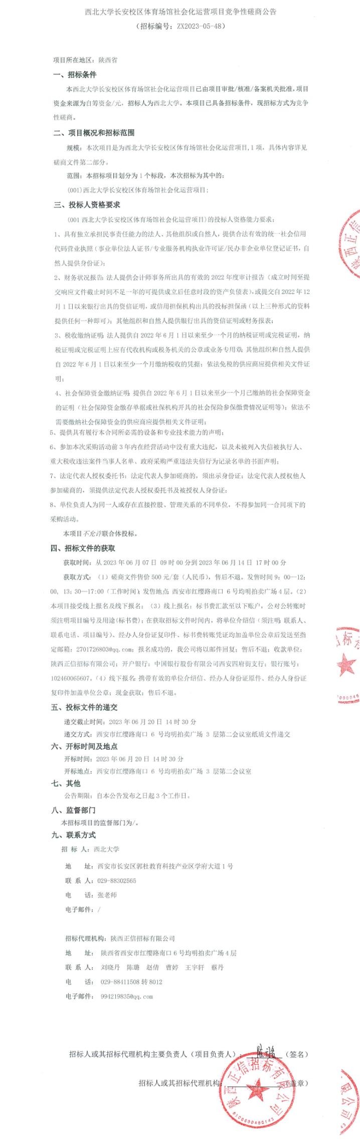 西北大学长安校区体育场馆社会化运营项目竞争性磋商公告
