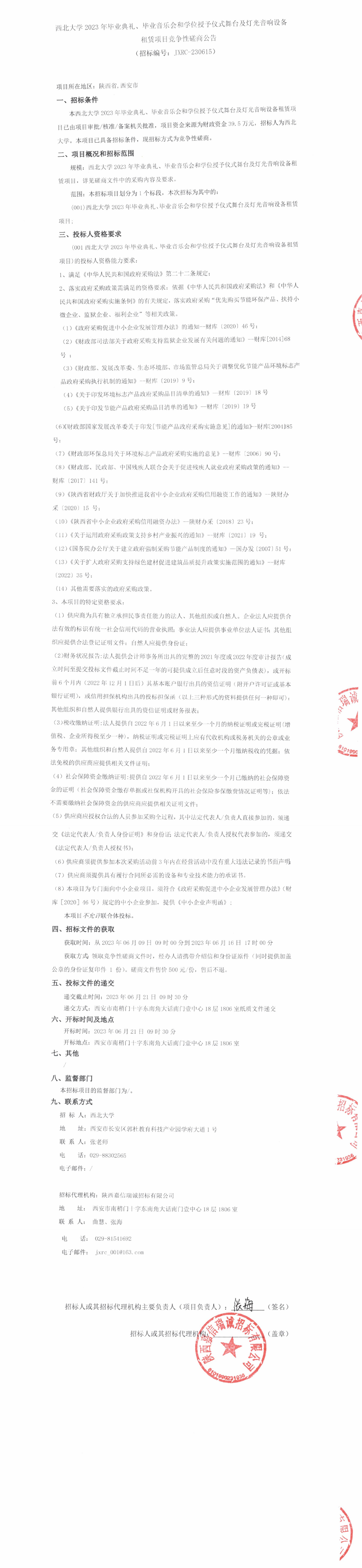 西北大学2023年毕业典礼、毕业音乐会和学位授予仪式舞台及灯光音响设备租赁项目竞争性磋商公告