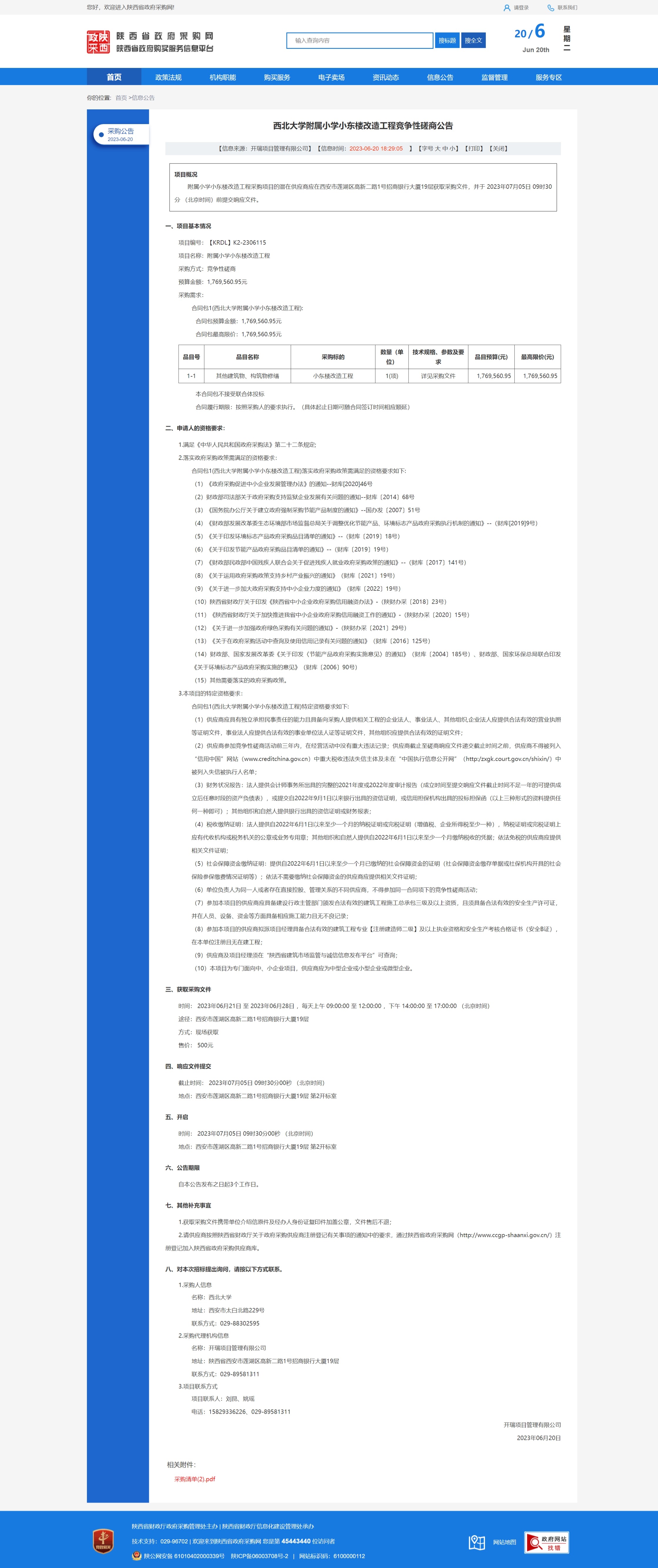 西北大学附属小学小东楼改造工程竞争性磋商公告