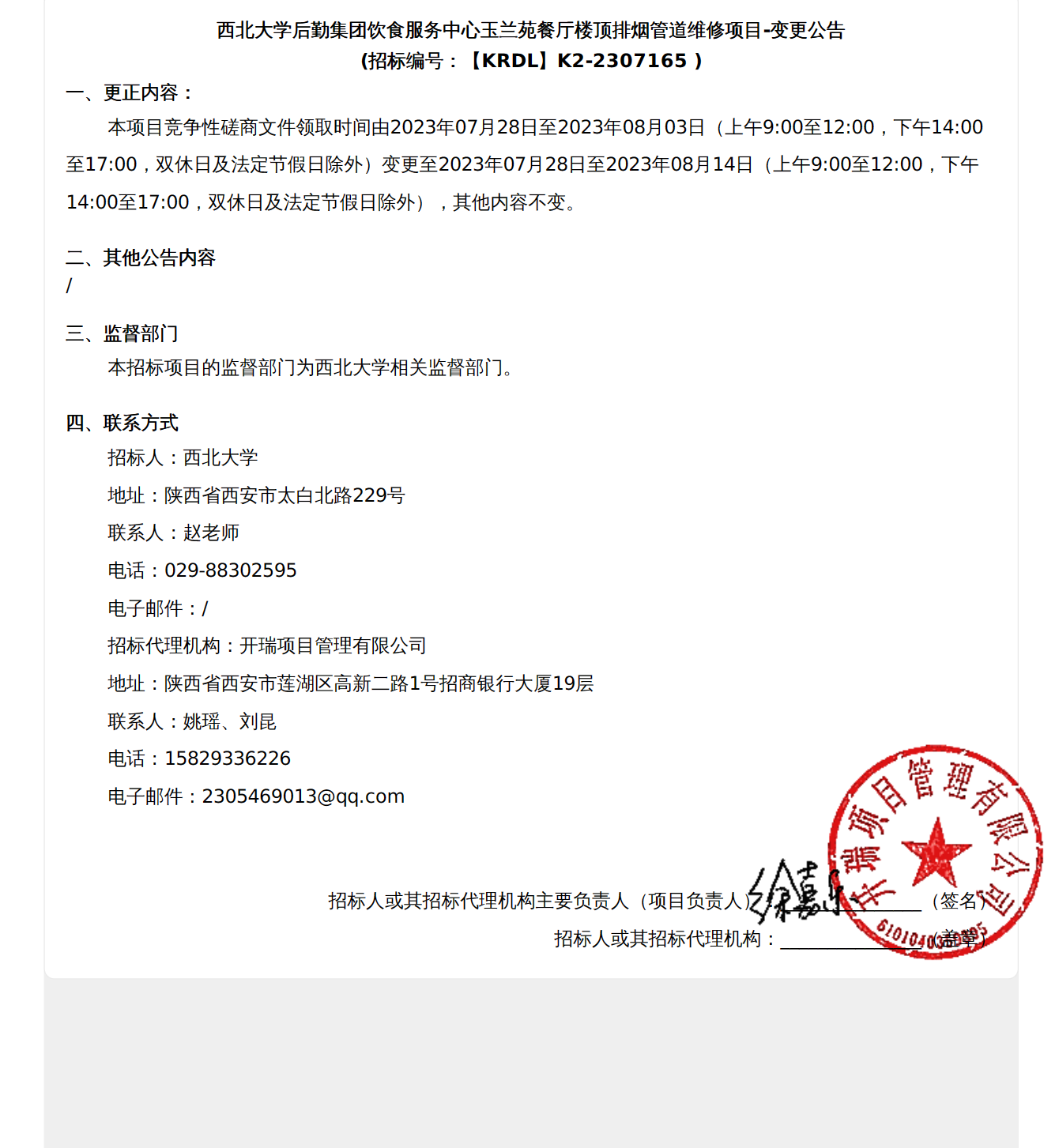 西北大学后勤集团饮食服务中心玉兰苑餐厅楼顶排烟管道维修项目-变更公告
